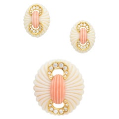 Pregiati orecchini Andreoli in oro bianco 18 carati con diamanti e corallo 20° secolo I superbi gioielli di Andreoli hanno attirato un'esigente clientela mondiale che include le ...