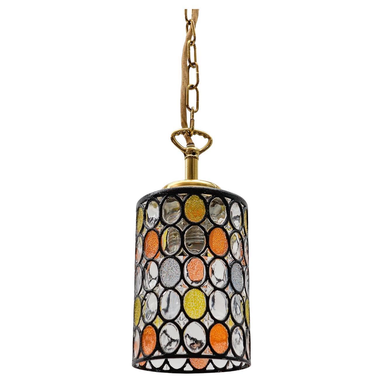 Lampada a sospensione Glashütte Limburg in vetro con dettagli dorati , anni '70