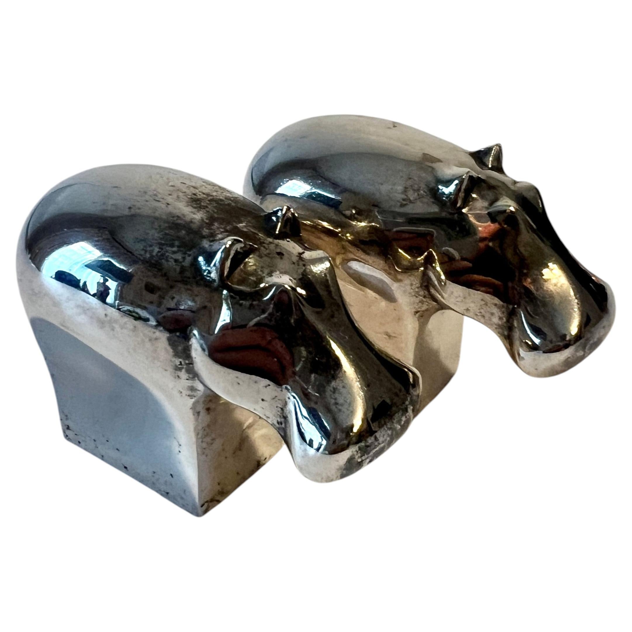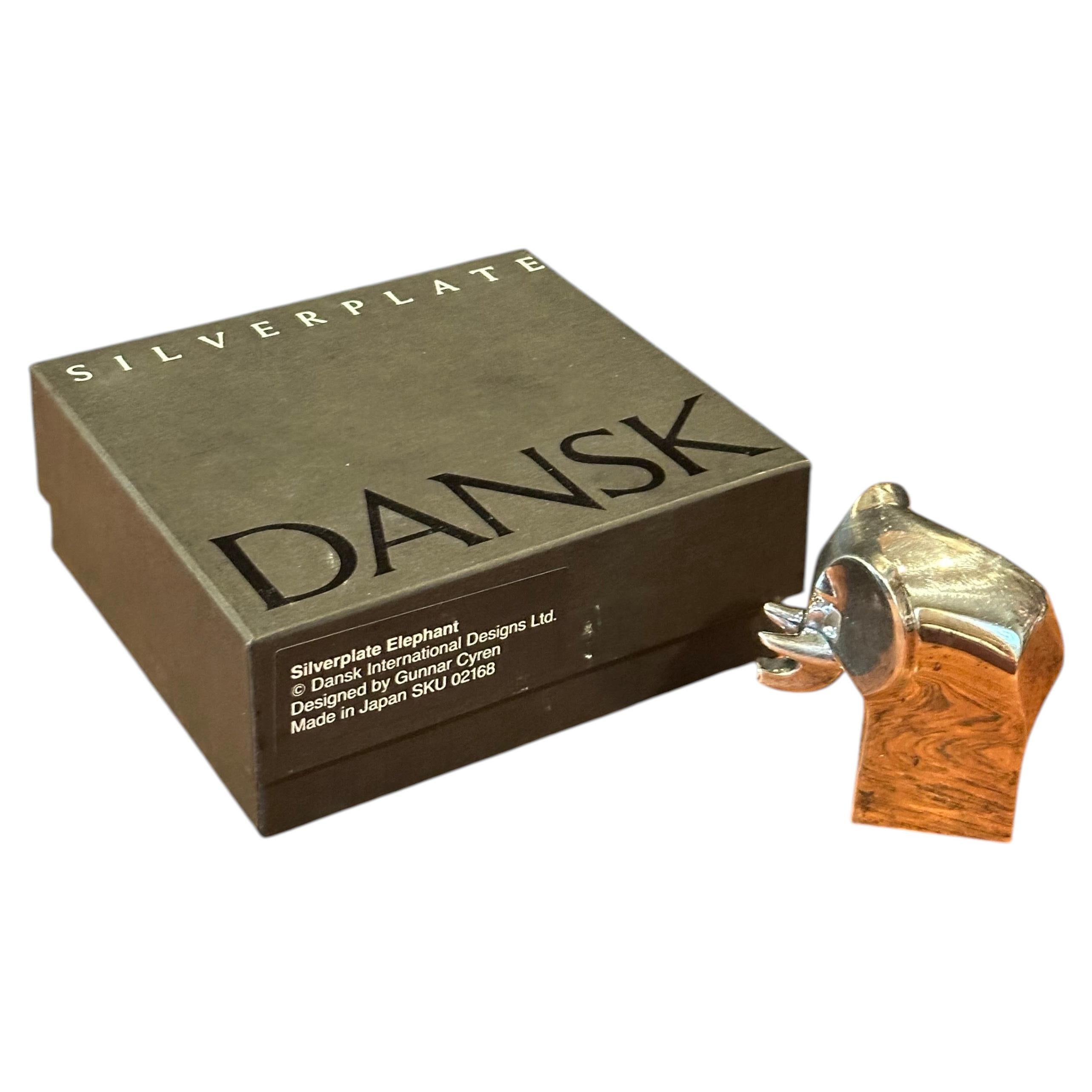 Dansk Mid-Century Silver Plate Animal Elephant Figurine Paperweight. Pesa-carte Dansk d'argento con statuetta di elefante. Marcato Dansk Designs Japan. Dimensioni: 1,75ʺW × 2,25ʺD × ...