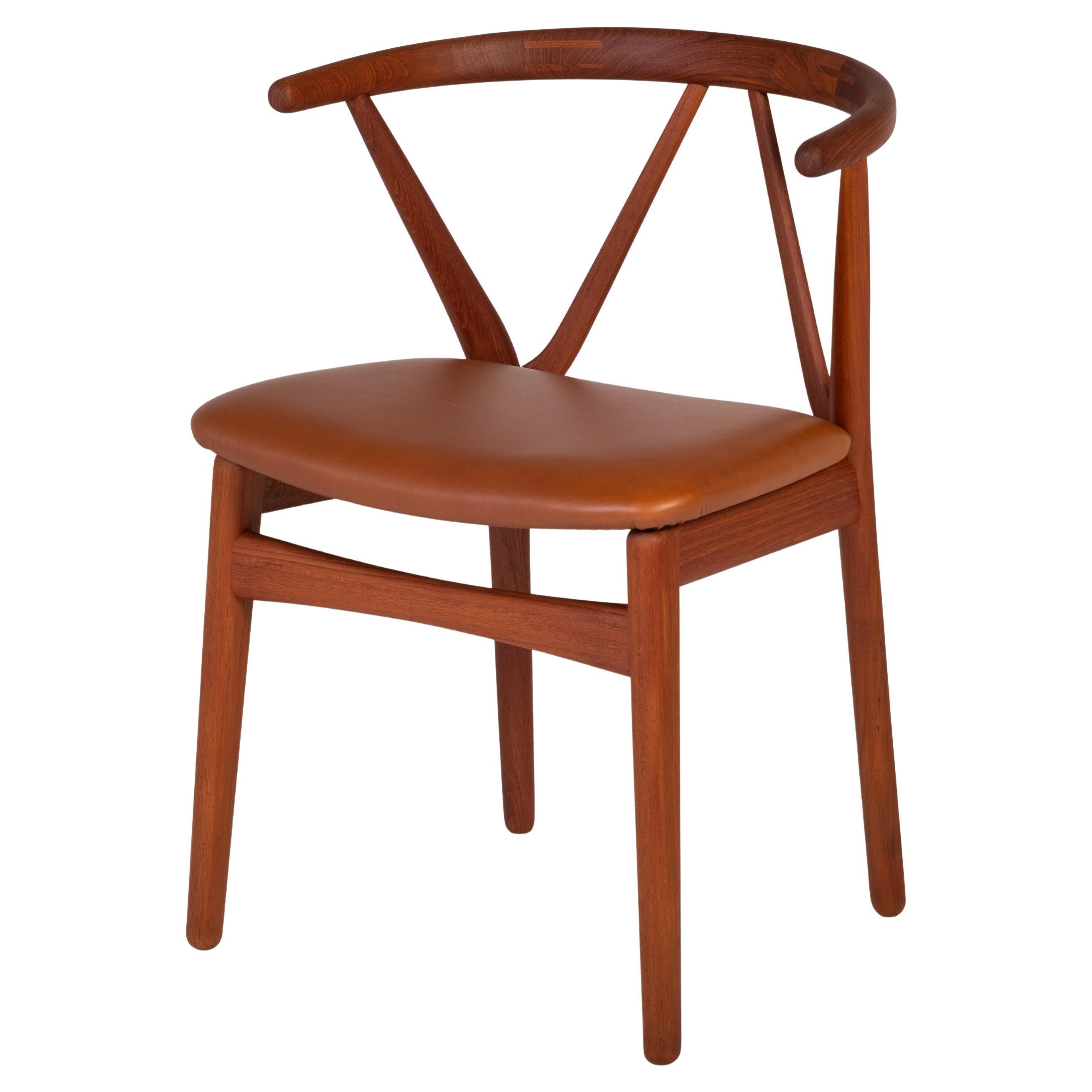 Raffinata ed elegante poltrona in rovere massiccio, disegnata da Henning Kjærnulf per EG Kvalitetsmøbel, Danimarca, anni Sessanta. Modello "Kurul". La sedia è stata rivestita in lan...