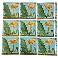 Si tratta di un incredibile set di 12 antiche piastrelle Art Nouveau fatte a mano, S.A. Produits Céramiques de la Dyle in Wijgmaal, Belga). Un bellissimo rilievo e un colore caldo e ...