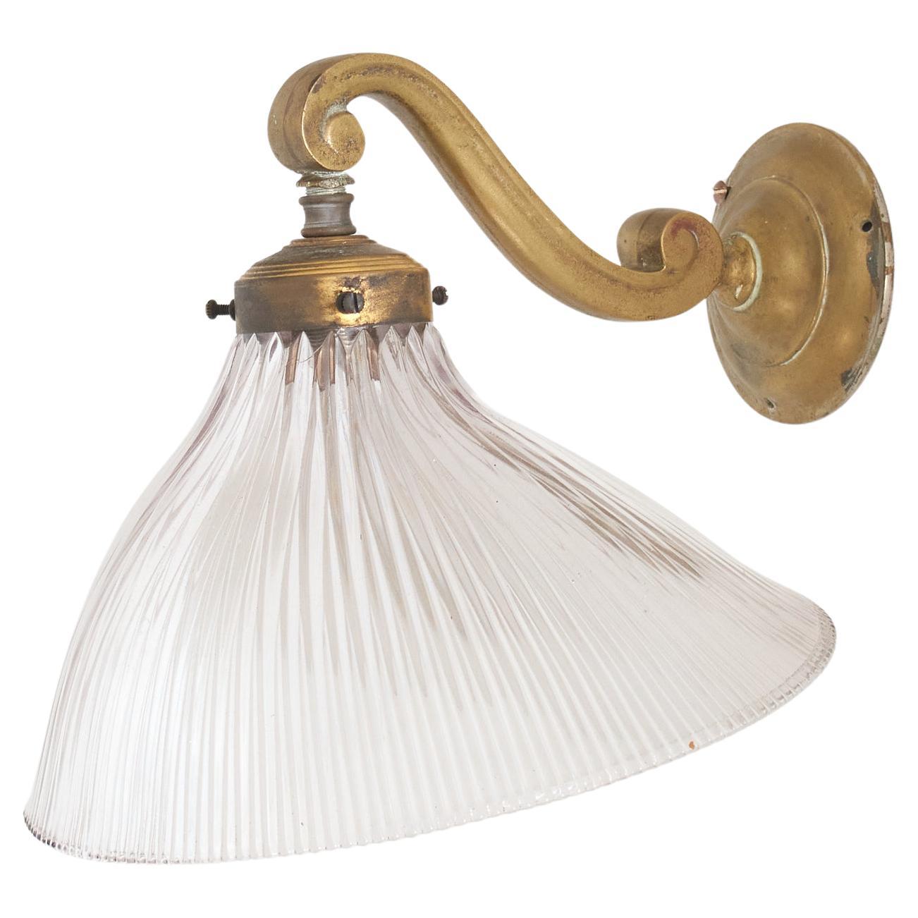 Antique French Holophane Frill Glass Brass Wall Task Kitchen Light Lamp