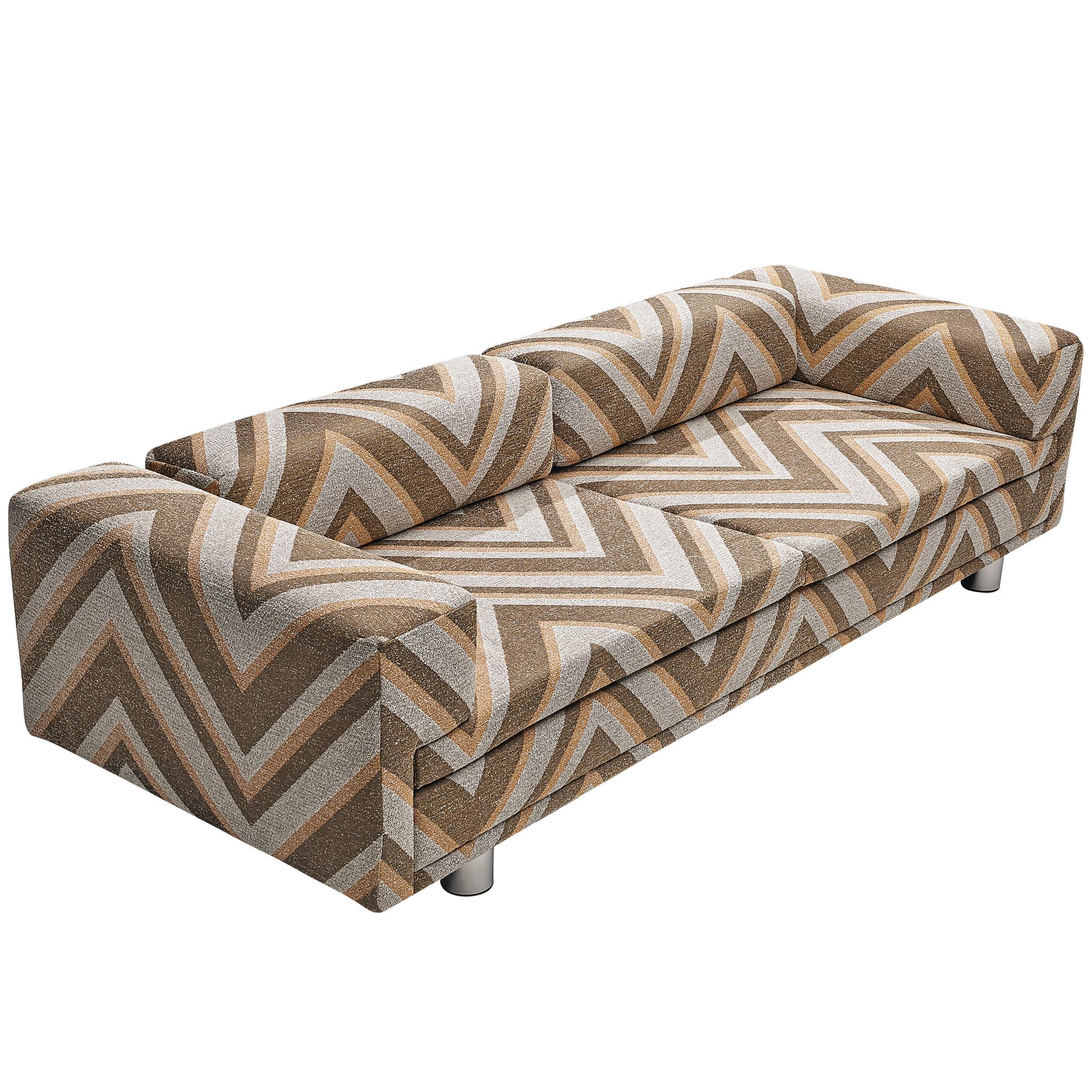 Howard Keith per HK Furniture, divano 'Diplomat', tessuto, acciaio cromato, Regno Unito, anni '70 Questo grande e voluttuoso divano "Diplomat" si colloca con sicurezza all'incrocio ...