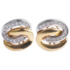 Orecchini a cerchio israeliani d'epoca in oro giallo 18 carati con diamanti e fondello Omega - Circa inizio-metà anni '80 Un raffinato paio di orecchini a cerchio vintage con diaman...