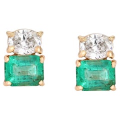 Orecchini a goccia in oro giallo 18K con smeraldo da 1,6 carati e diamante da 11 carati
