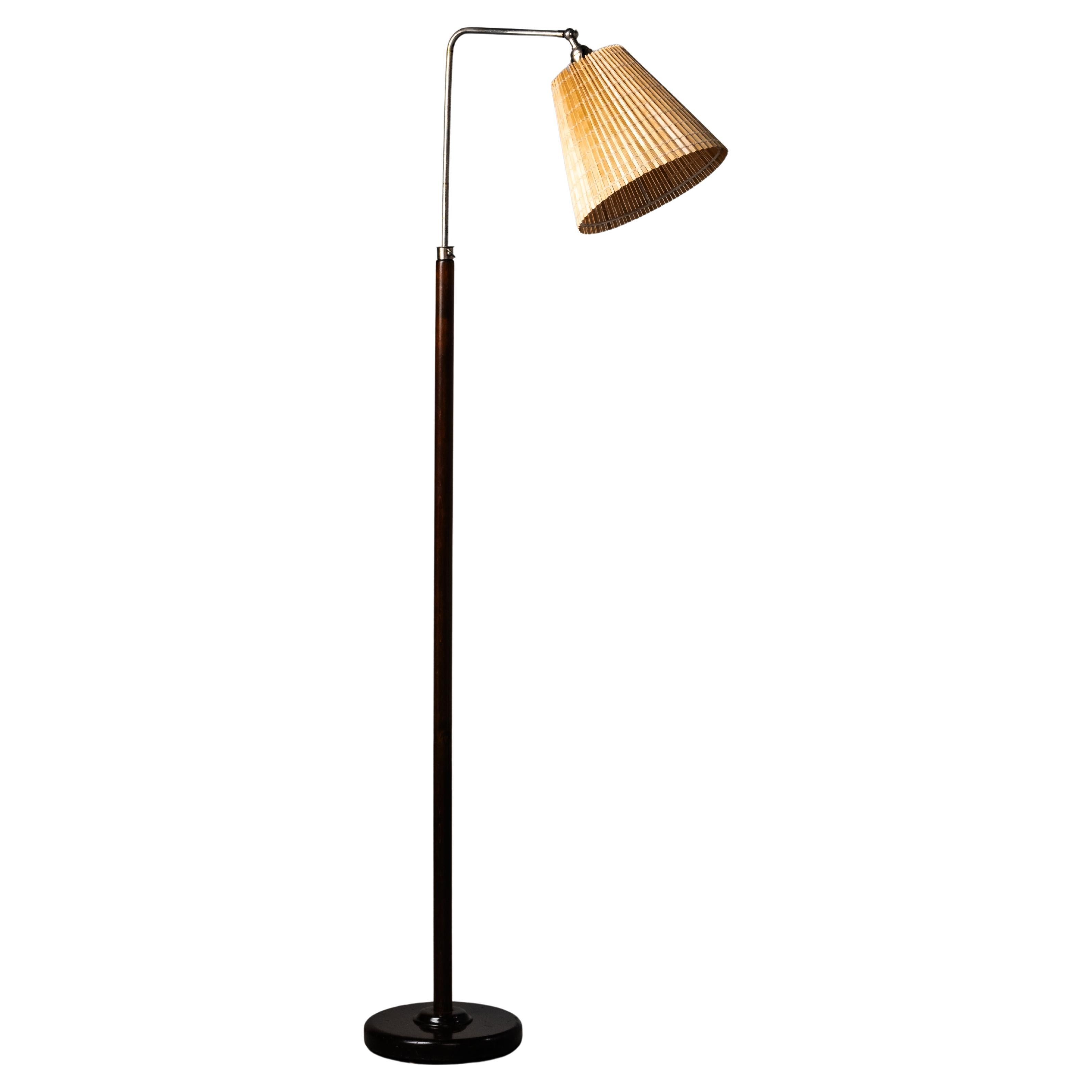 Rara lampada da terra in ottone e rattan Gunnel Nyman Model No. 62043 di Idman, anni '40