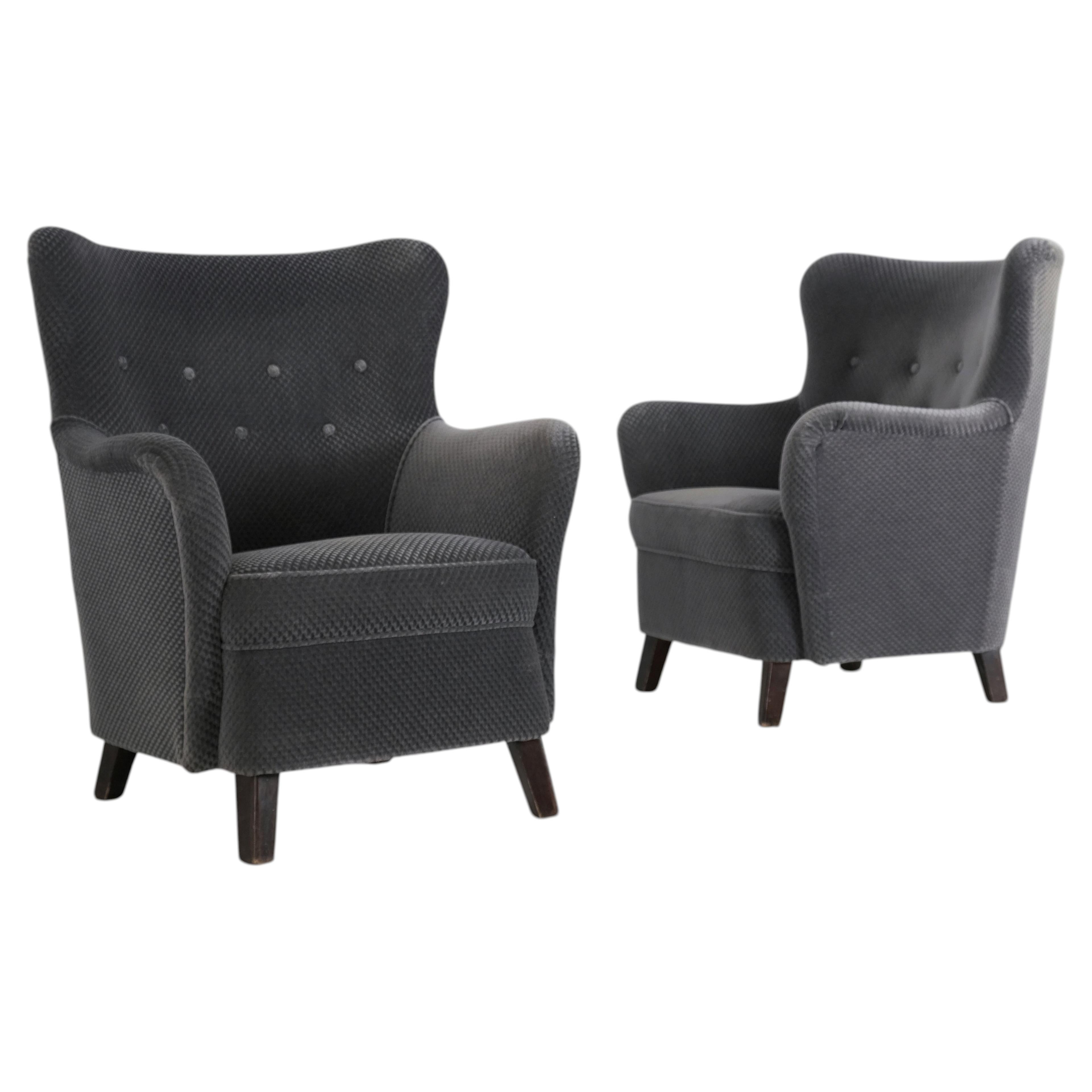 Ilmari Lappalainen, Asko, Finlandia, metà del secolo scorso, Sedie da salotto "Laila", Beeche, tessuto verde, Finlandia, anni '50 Coppia di sedie lounge "Laila" disegnate da Ilmari ...