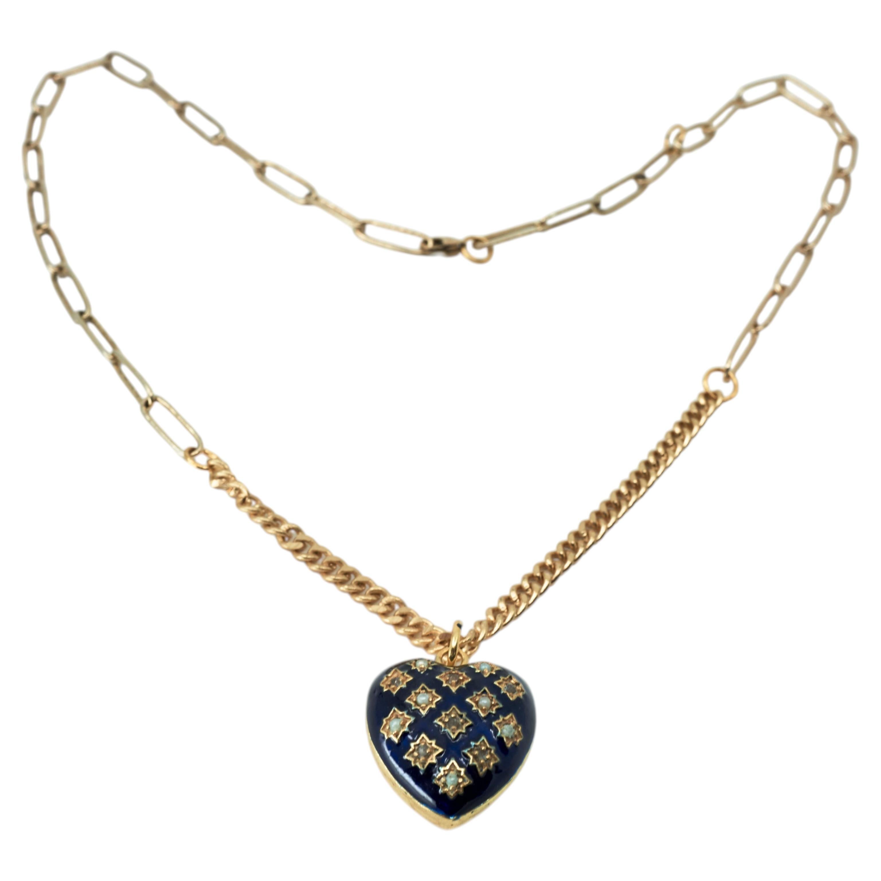 Collana con cuore Smalto diamante Stile vittoriano A. Valentin Cuore