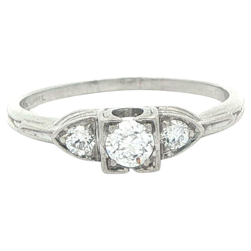 Jabel - Fascia nuziale a tre pietre in stile Art Déco - Anello vintage in oro bianco 18 carati