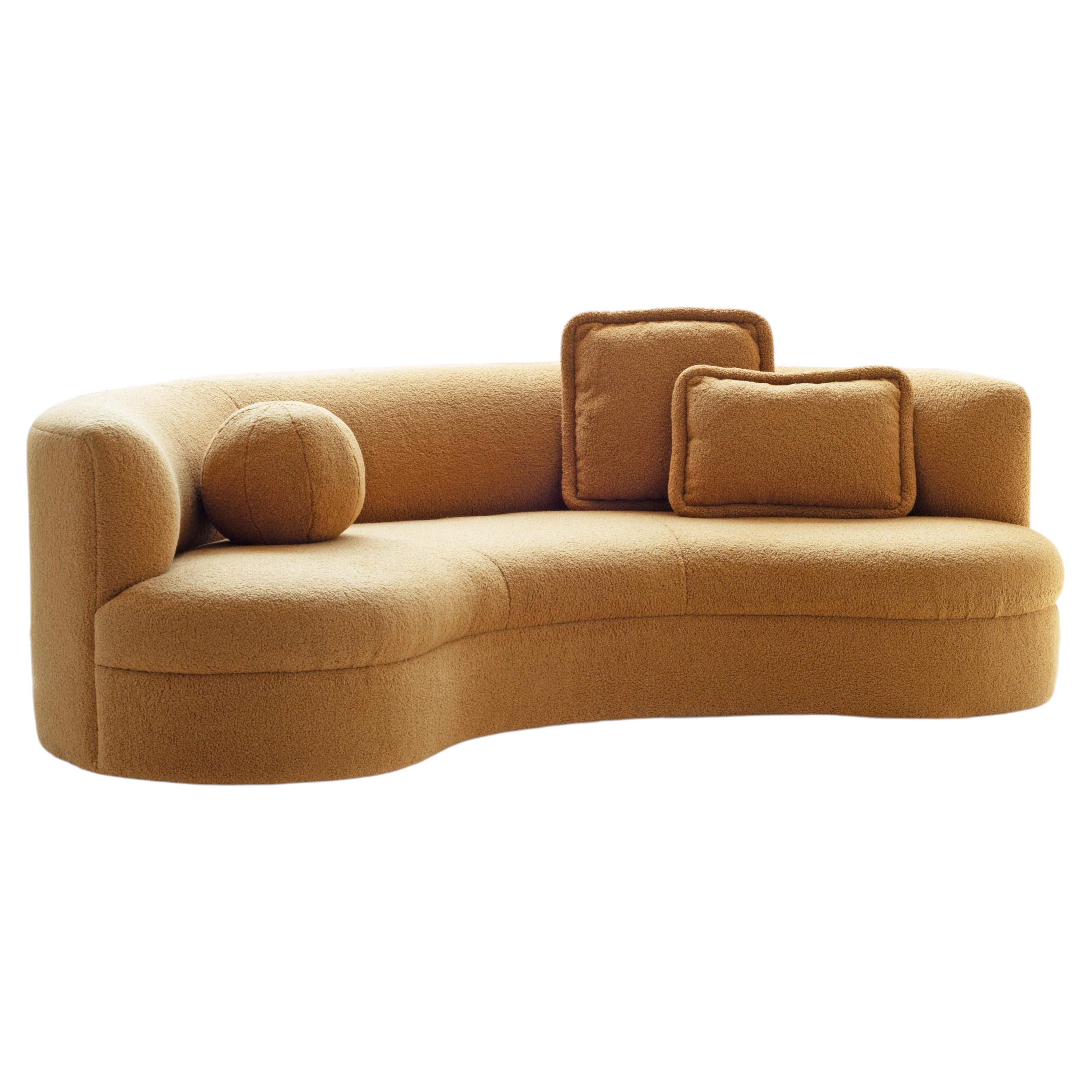 Questo divano degli anni '80 disegnato da John Mascheroni incarna l'estetica elegante e minimalista dell'epoca con la sua silhouette elegantemente curva. Rivestito in un ricco tessut...