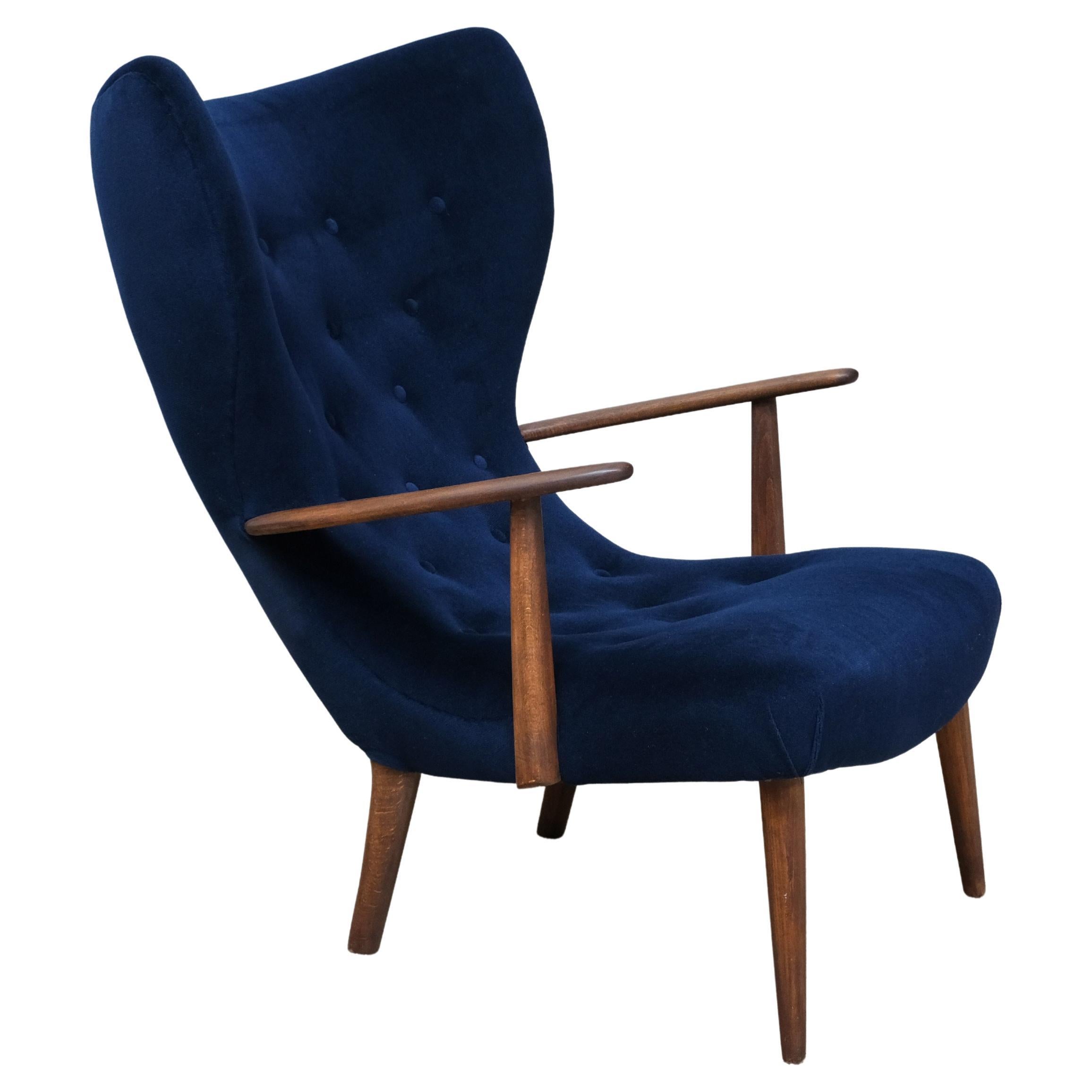 Madsen & Schubell Poltrona Pragh in velluto Navy Pierre Frey, Danimarca, anni '50