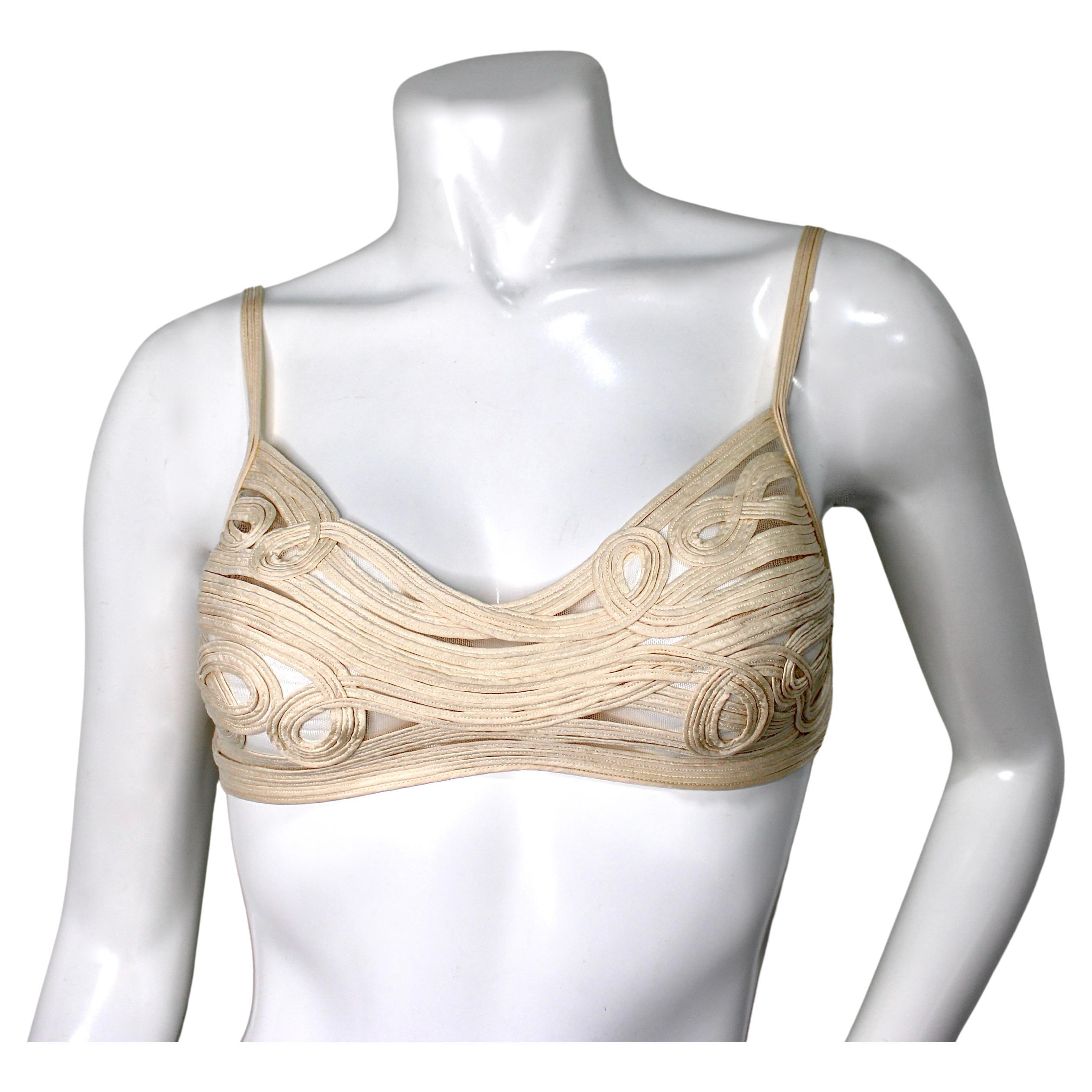 Abito lungo La Perla risalente alla fine degli anni ’90 / primi anni 2000, realizzato in delicato tulle color avorio con raffinato ricamo floreale e applicazioni tridimensionali dist...