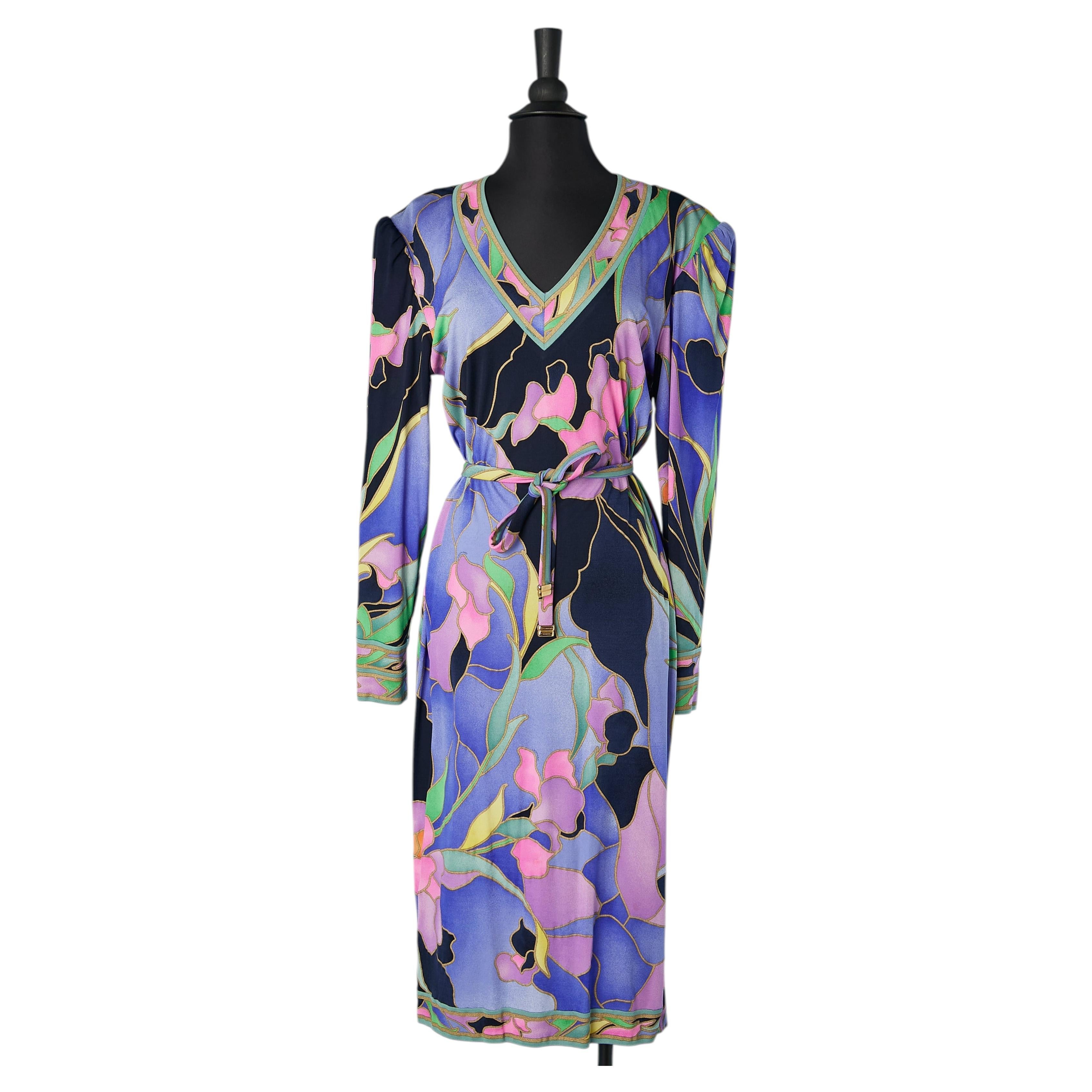 Abito in jersey di seta con stampa floreale di Leonard of Paris del 1970