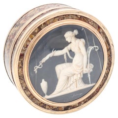 Scatola per incenso in avorio intagliato giapponese (kōgō), finemente lavorata, risalente al periodo Meiji, circa 1880. Questa elegante scatola circolare è magistralmente scolpita i...