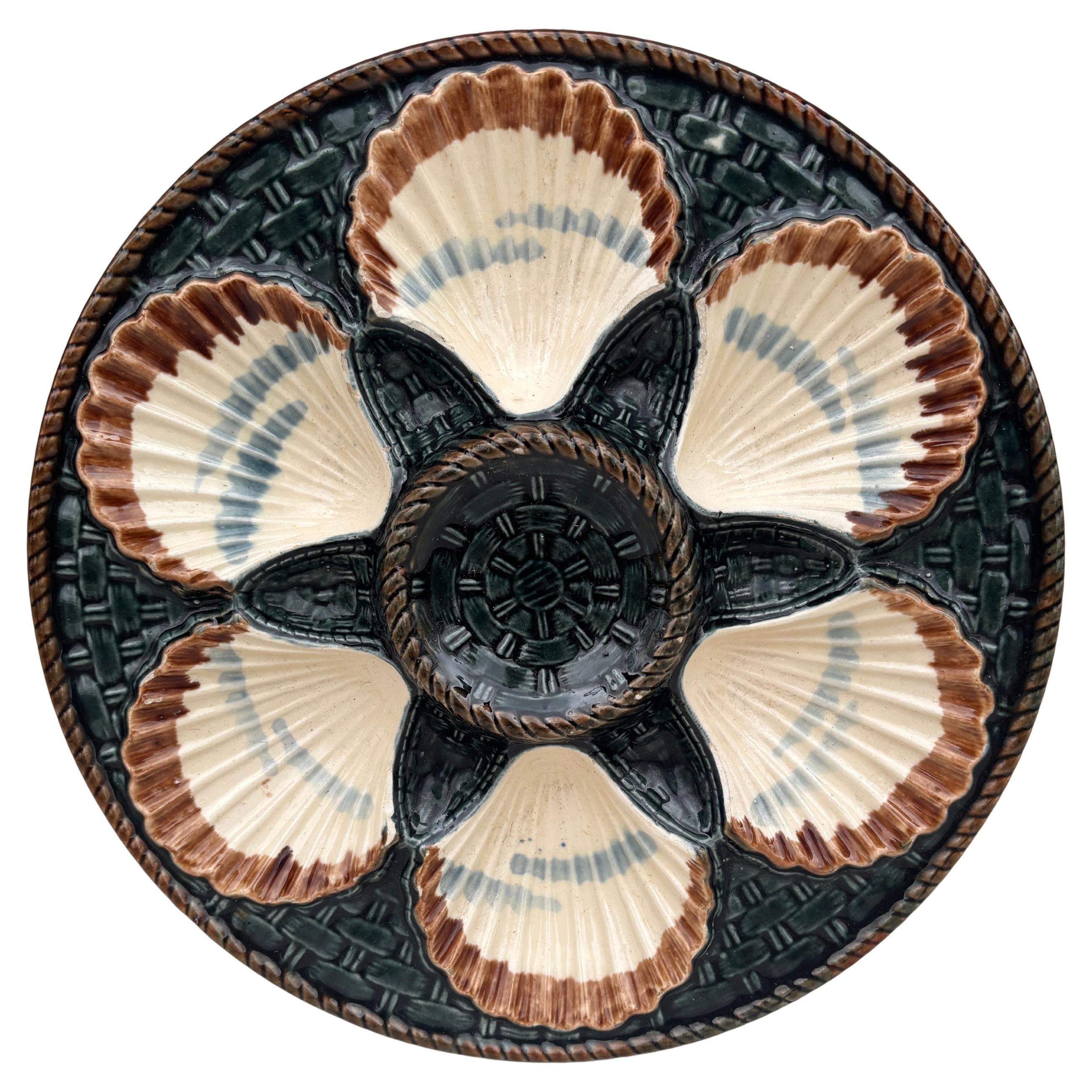 Set di 4 piatti da portata - Maiolica, XIX secolo - Smalto verde, bianco e marrone Descrizione: Si tratta di un set di quattro piatti da ostrica in maiolica del XIX secolo, un class...