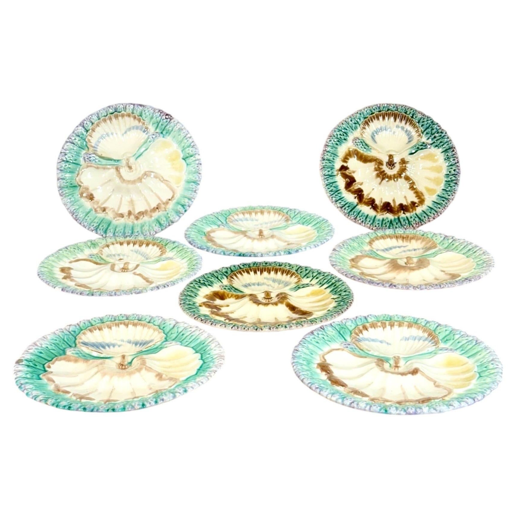 Set di 8 piatti da ostrica in maiolica Longchamps del XIX secolo