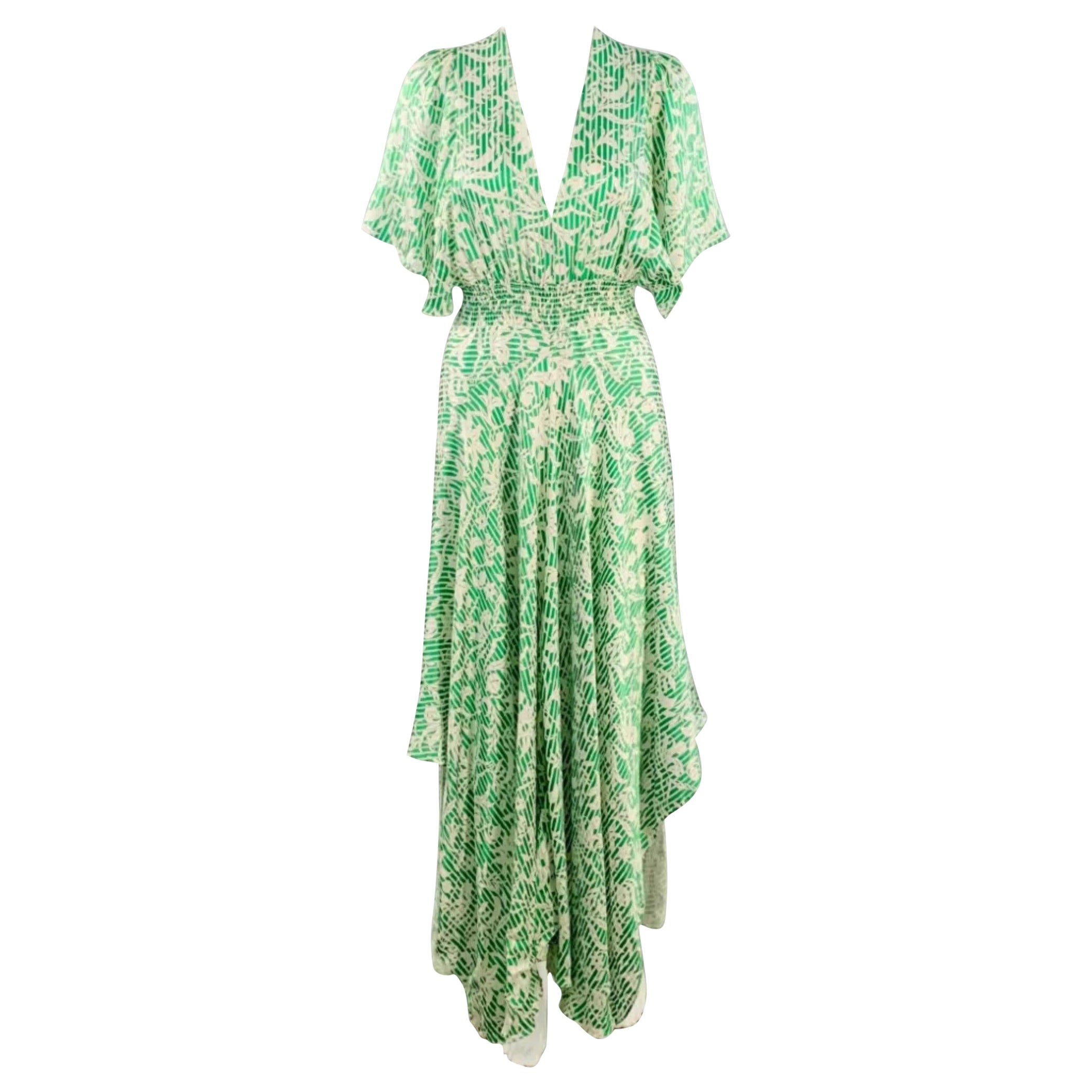 MAJE Taglia 2 Verde Beige Viscosa Miscela Floreale Maxi Abito con Scollo a V