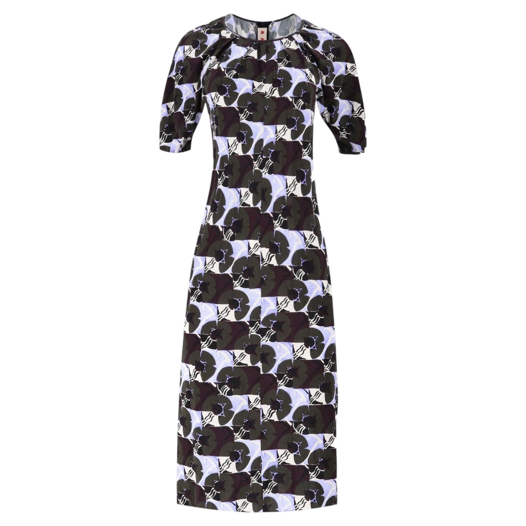 Vestito midi con stampa floreale astratta di Marni Abito midi dalla linea a giorno, realizzato in viscosa e disegnato con un motivo floreale astratto nei toni del nero, del verde e ...
