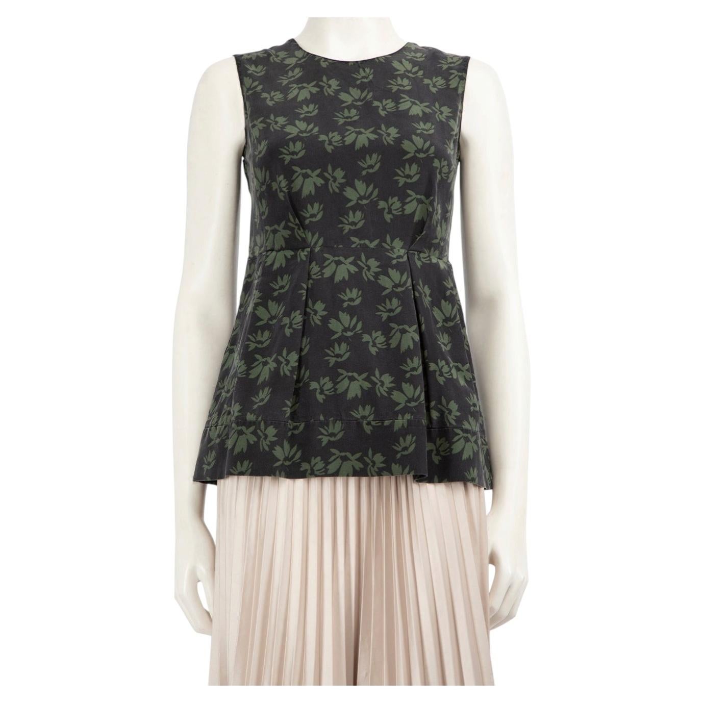 MARNI rosso, cotone floreale, bottone a conchiglia senza maniche, canotta a bolle d'aria IT38 XS
