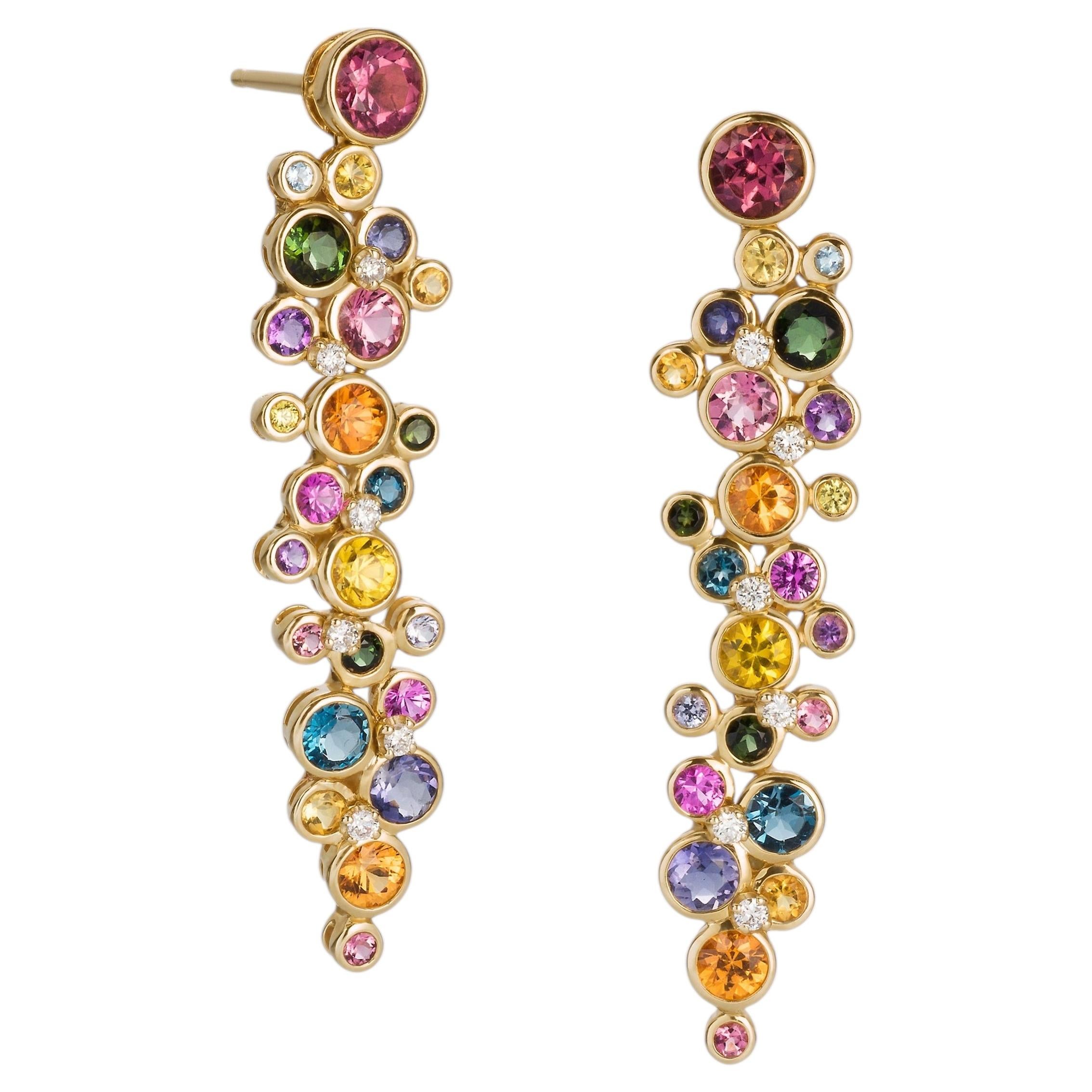 Orecchini allungati multicolore 18k con grappoli di gemme e diamanti