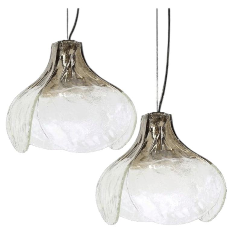 COPPIA di lampade a sospensione in vetro di Murano Carlo Nason LS 134 Medusa Pulegoso per Mazzega Murano
