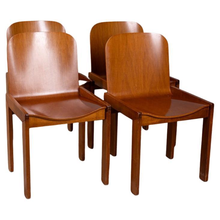 Set di quattro sedie con struttura e seduta in legno curvato, disegnate da Afra e Tobia Scarpa per Molteni, anni '70.