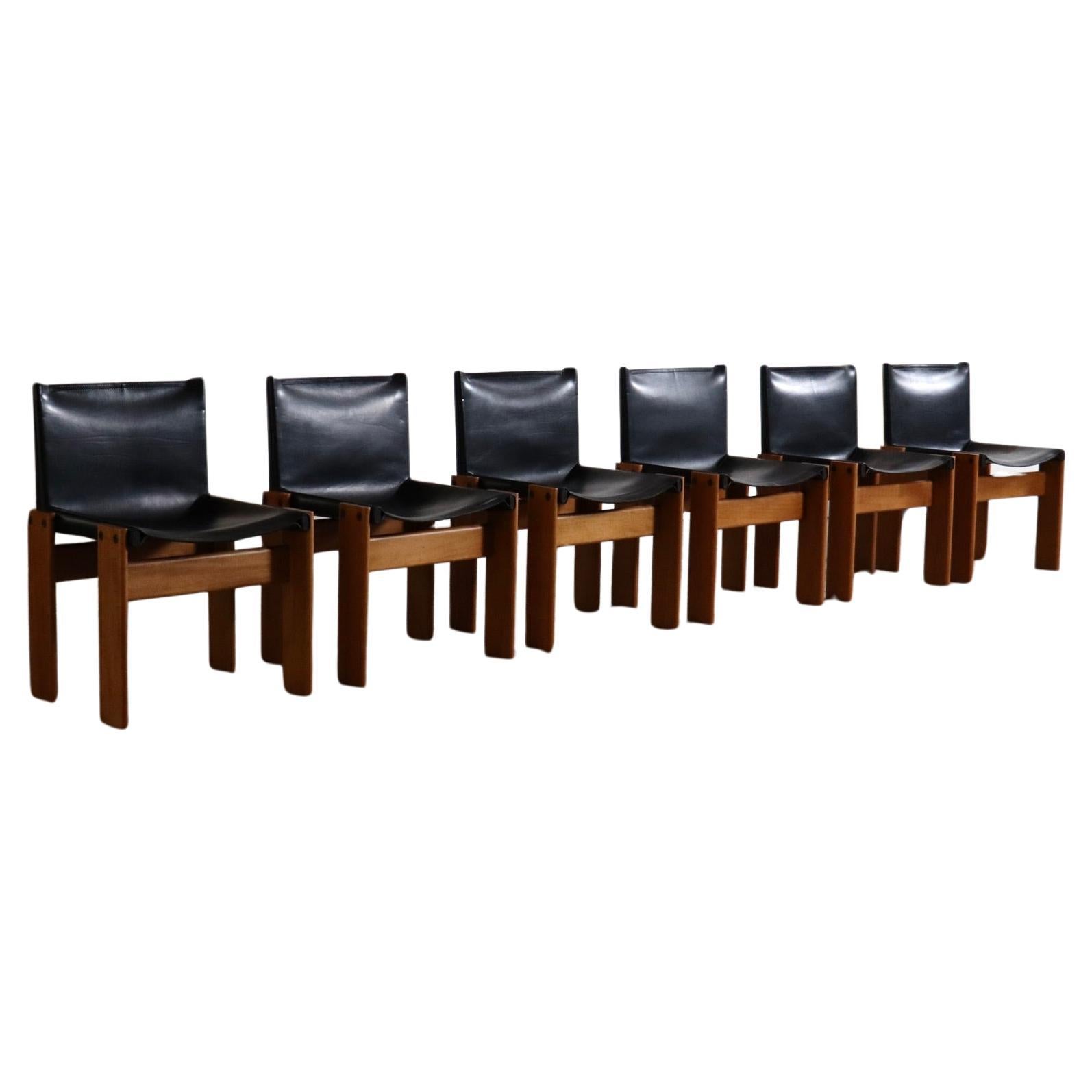 Sedie da pranzo "Monk" di Afra & Tobia Scarpa per Molteni, tela avorio e noce, Italia, 1974, set di sei.
