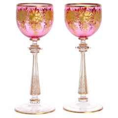 16 Bicchieri da vino vintage, doppio bordo in oro 24 carati con stelo tagliato dal design inciso
