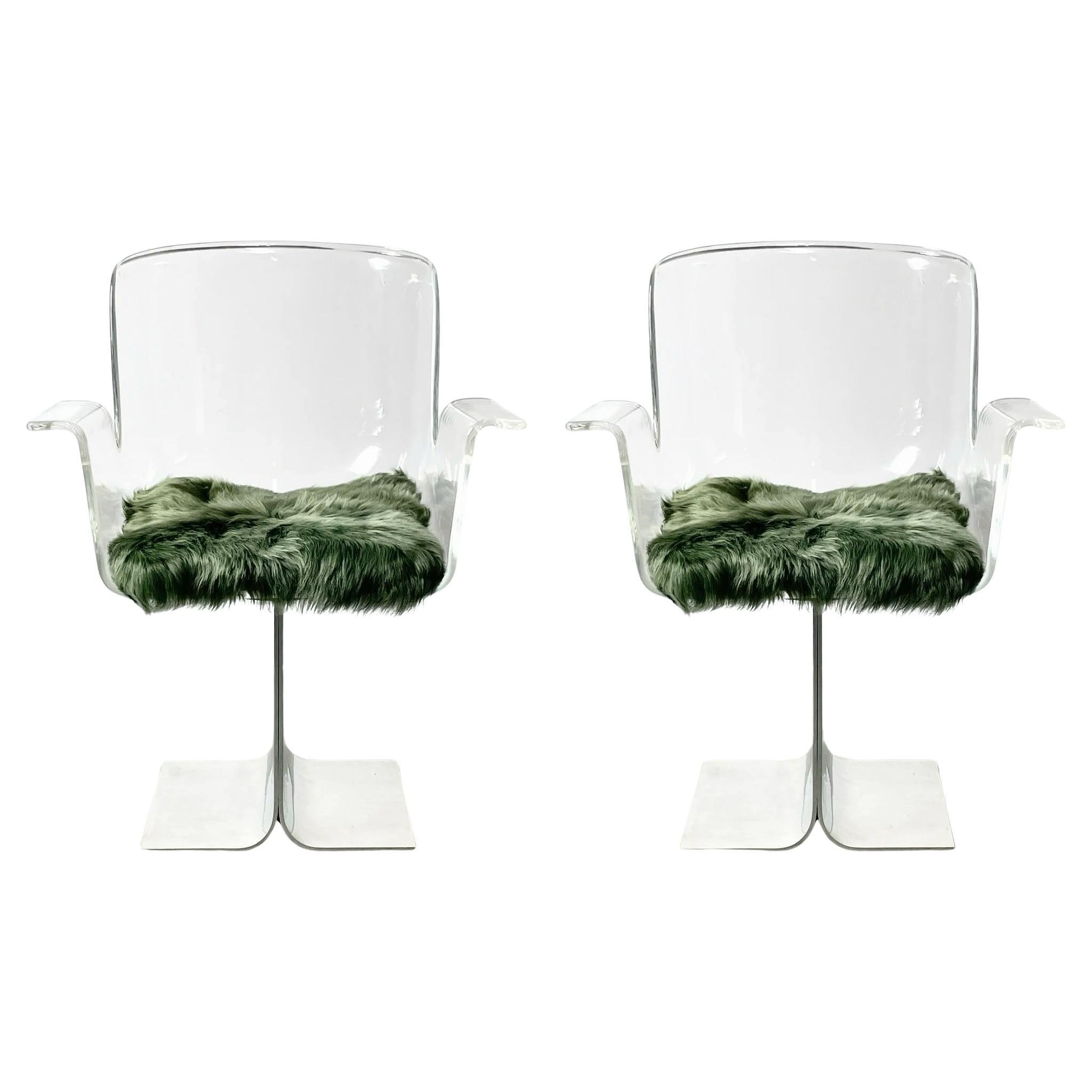 Coppia di sedie girevoli scultoree in lucite e alluminio di Pace Collectional 1970's