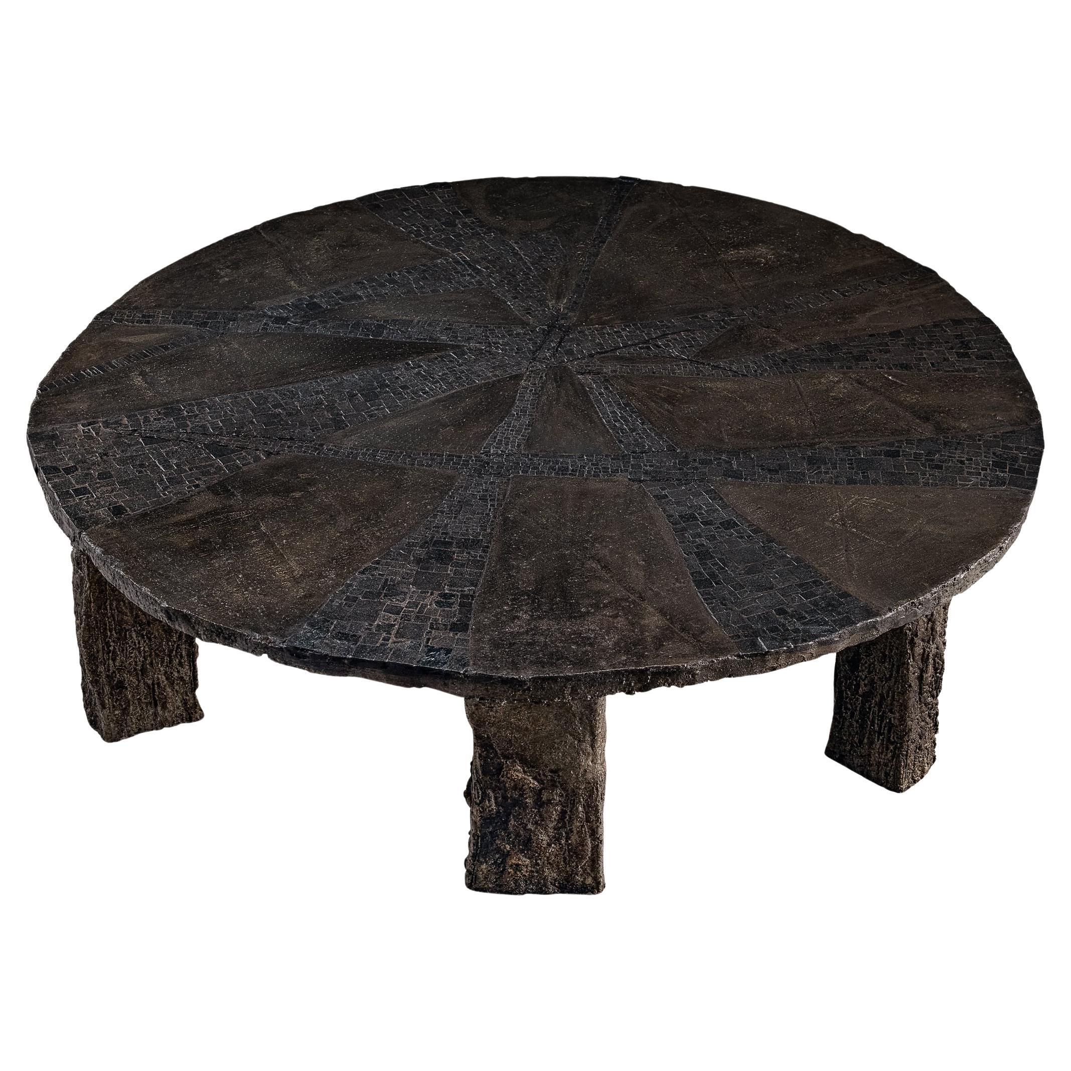 Questo tavolino da caffè del 1960, raro e sorprendente, è un esempio dell'approccio scultoreo dello Studio A ai mobili e del suo fascino per i materiali grezzi e geologici. Firmato s...