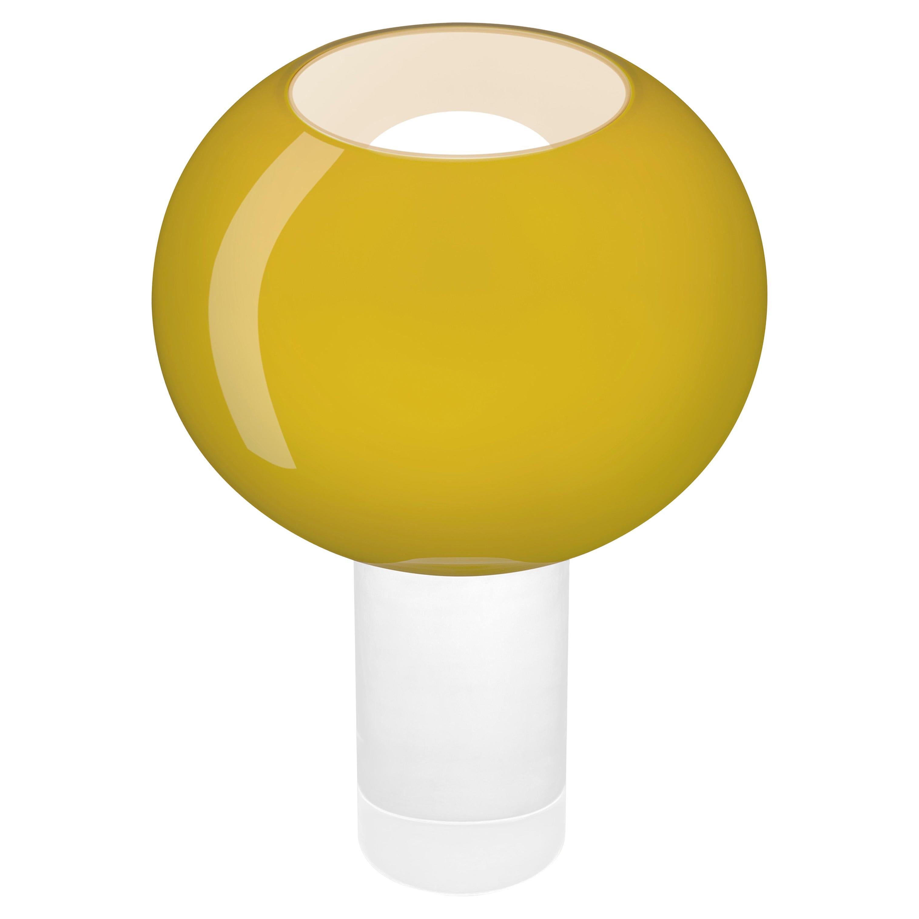 Lampada da tavolo a luce diretta e diffusa. Diffusore in vetro soffiato a mano con finitura lucida, bianco all'interno e colorato all'esterno. Nelle versioni turchese, rosso ciliegia...