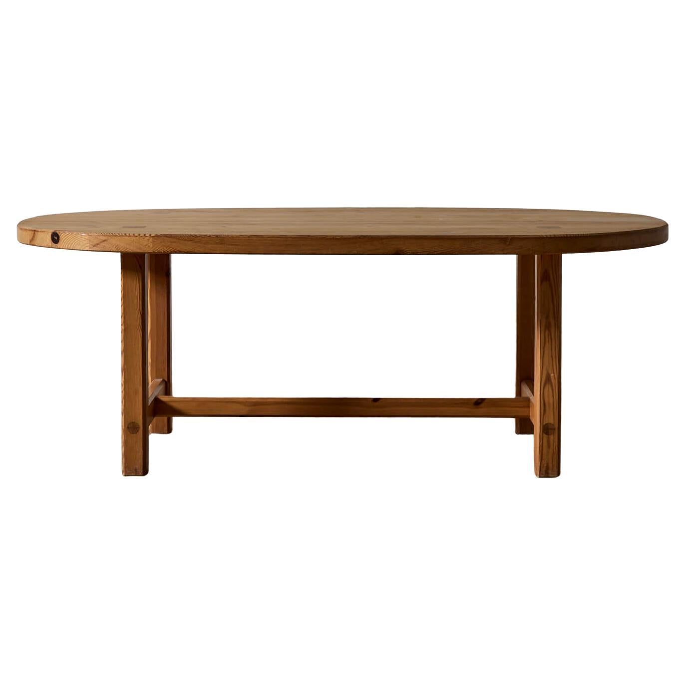 Tavolino moderno svedese rettangolare in pino massiccio. Realizzato da Roland Wilhelmsson come parte della sua produzione per Ågesta. Timbrato e firmato 1969. Questo tavolo brutalist...
