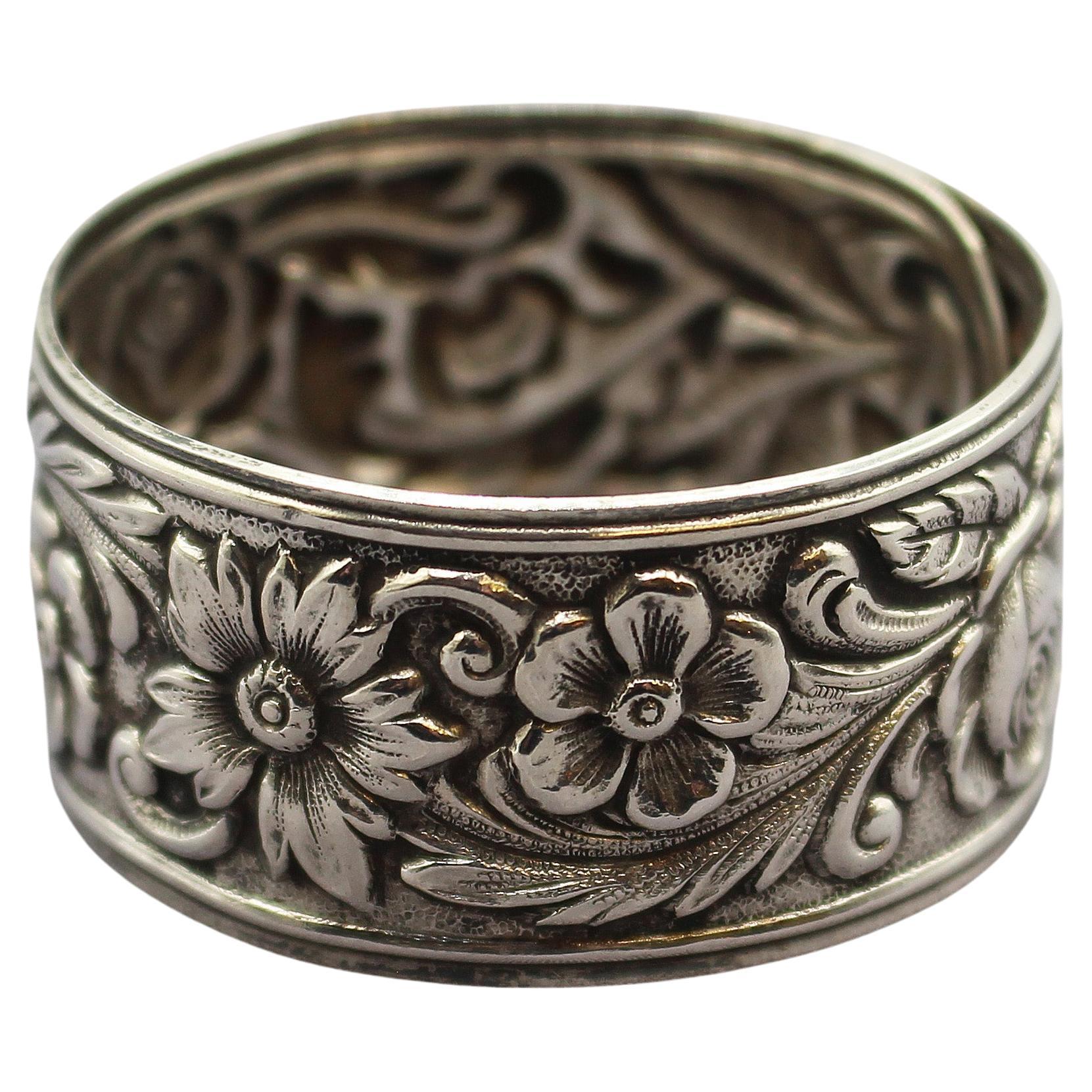 C. Anello tovagliolo Kirk in argento sterling repousse degli anni 1930-40