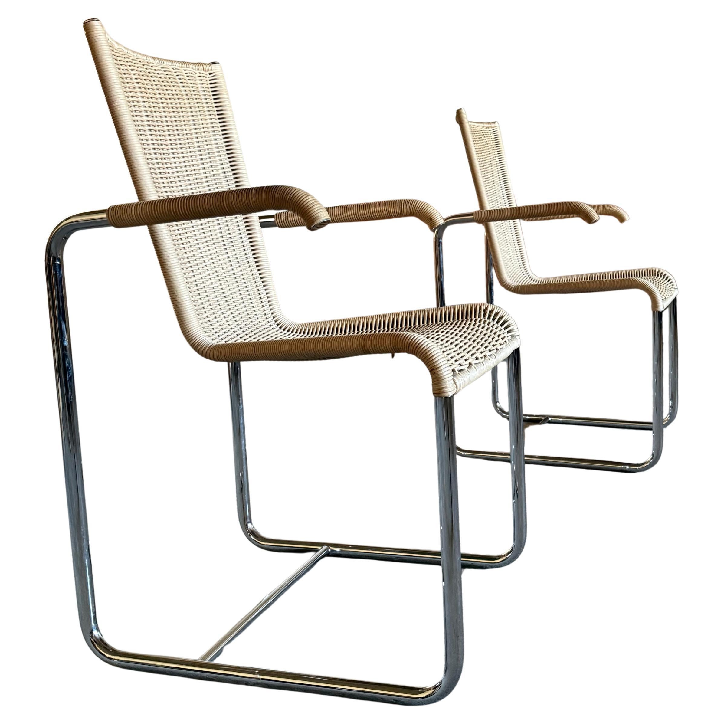 SET DI 2 SEDIE CANTILEVER TUBOLARI IN ACCIAIO DI TECTA D20 RATTAN, GERMANIA Anni '80