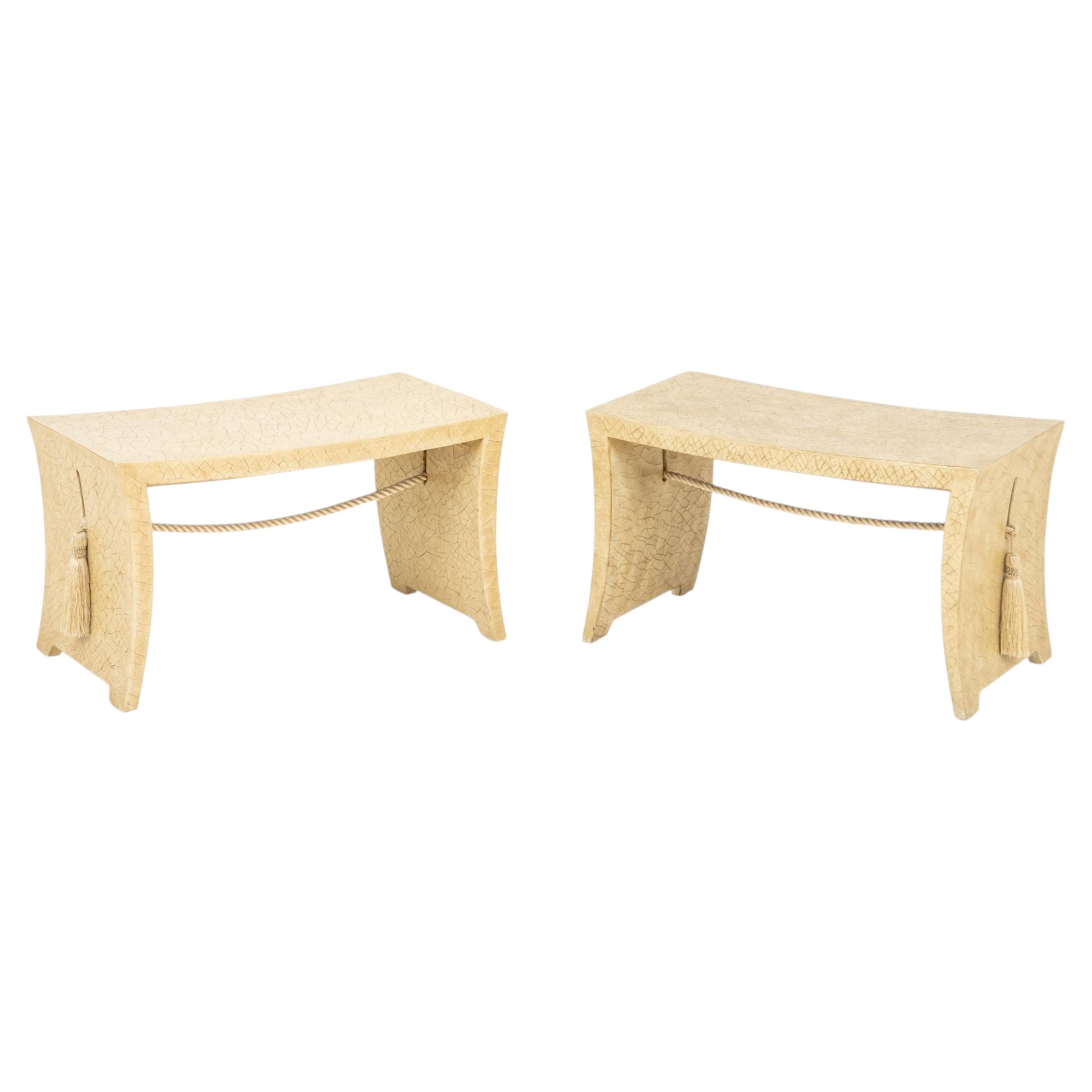 Coppia di sedie da salotto in rattan Thomas Pheasant McGuire + ottomana