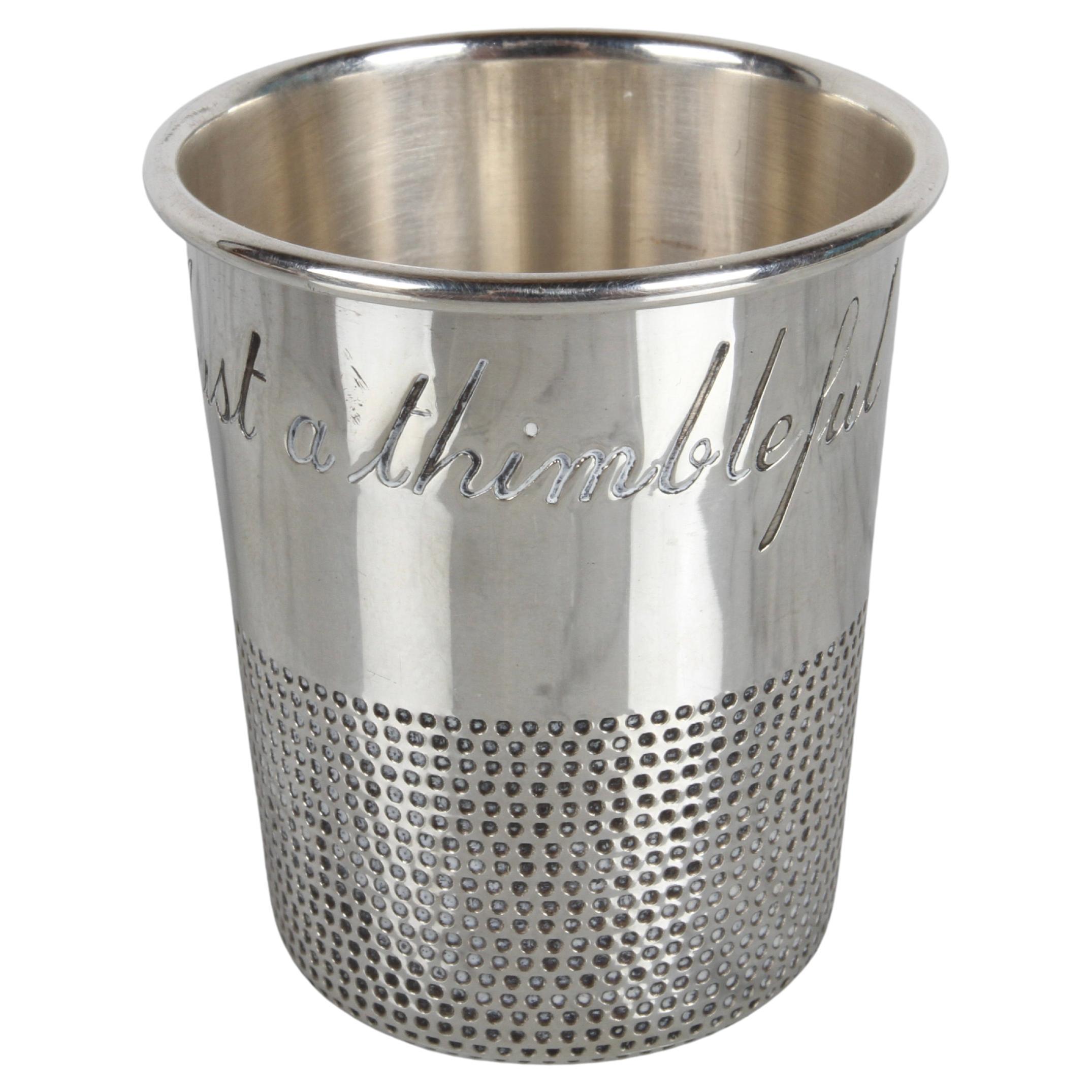 Stravagante bicchierino da bar vintage Towle Sterling Silver con incisione "Just a Thimbleful", un jigger o un bicchierino da bar.