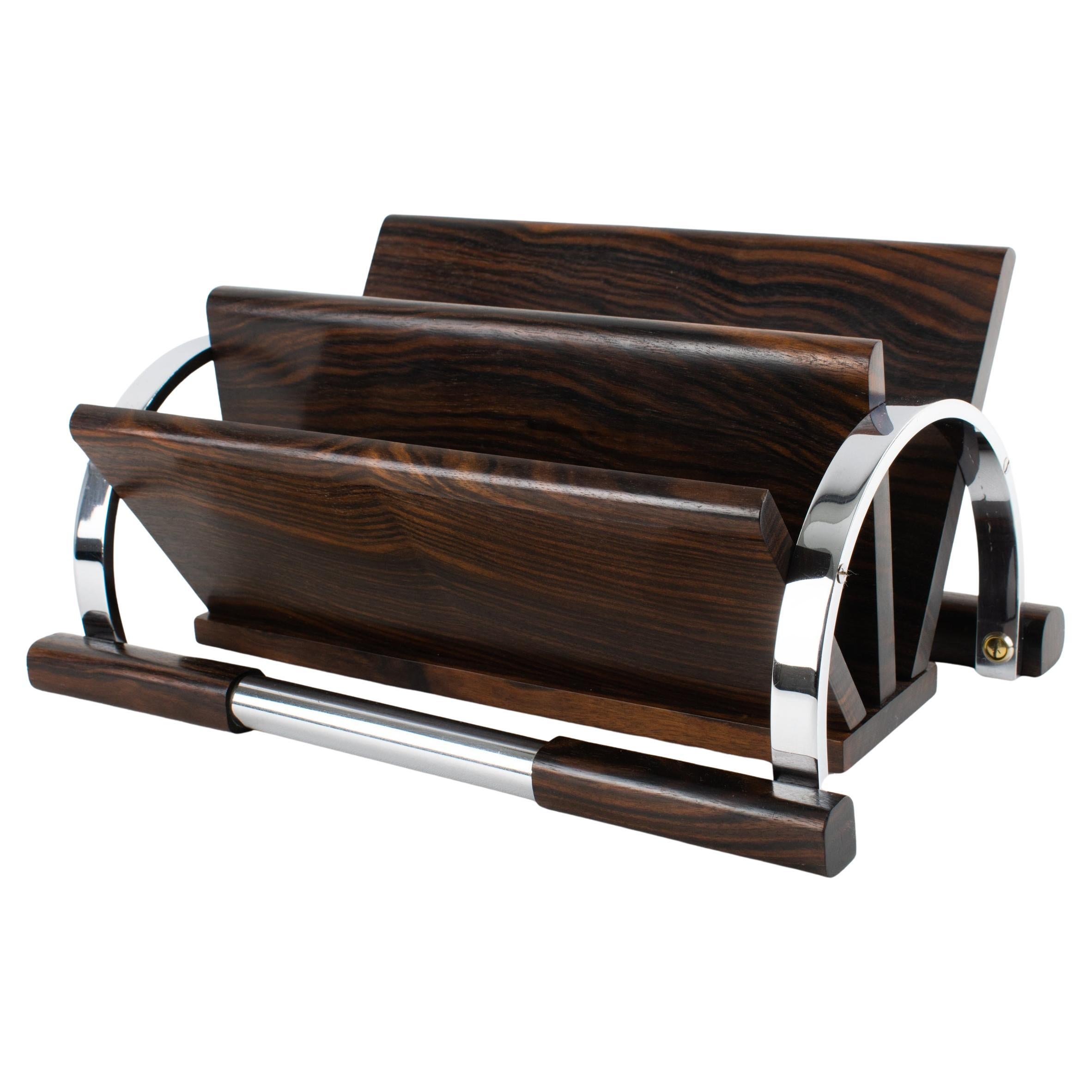 Portalettere accessorio da scrivania in legno di Macassar e cromo Art Deco, 1930 circa