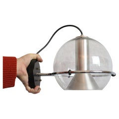 Lampada a sospensione rotonda in vetro vintage in metallo grigio francese di Philips