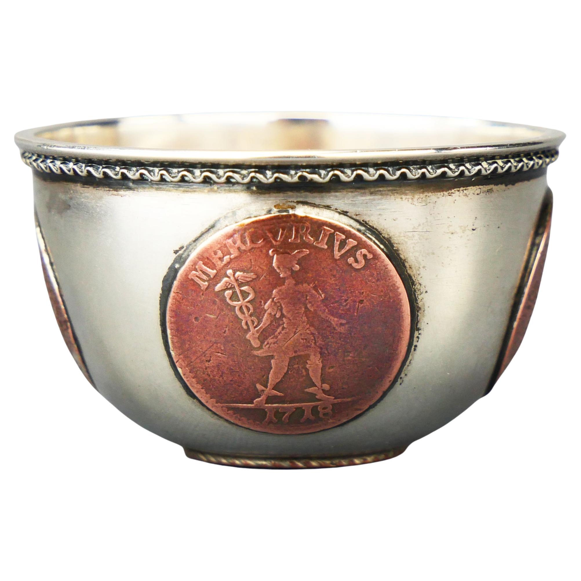 1907 Shot Cup Beaker con monete del 18° secolo in argento massiccio 830/925 / 43 gr.