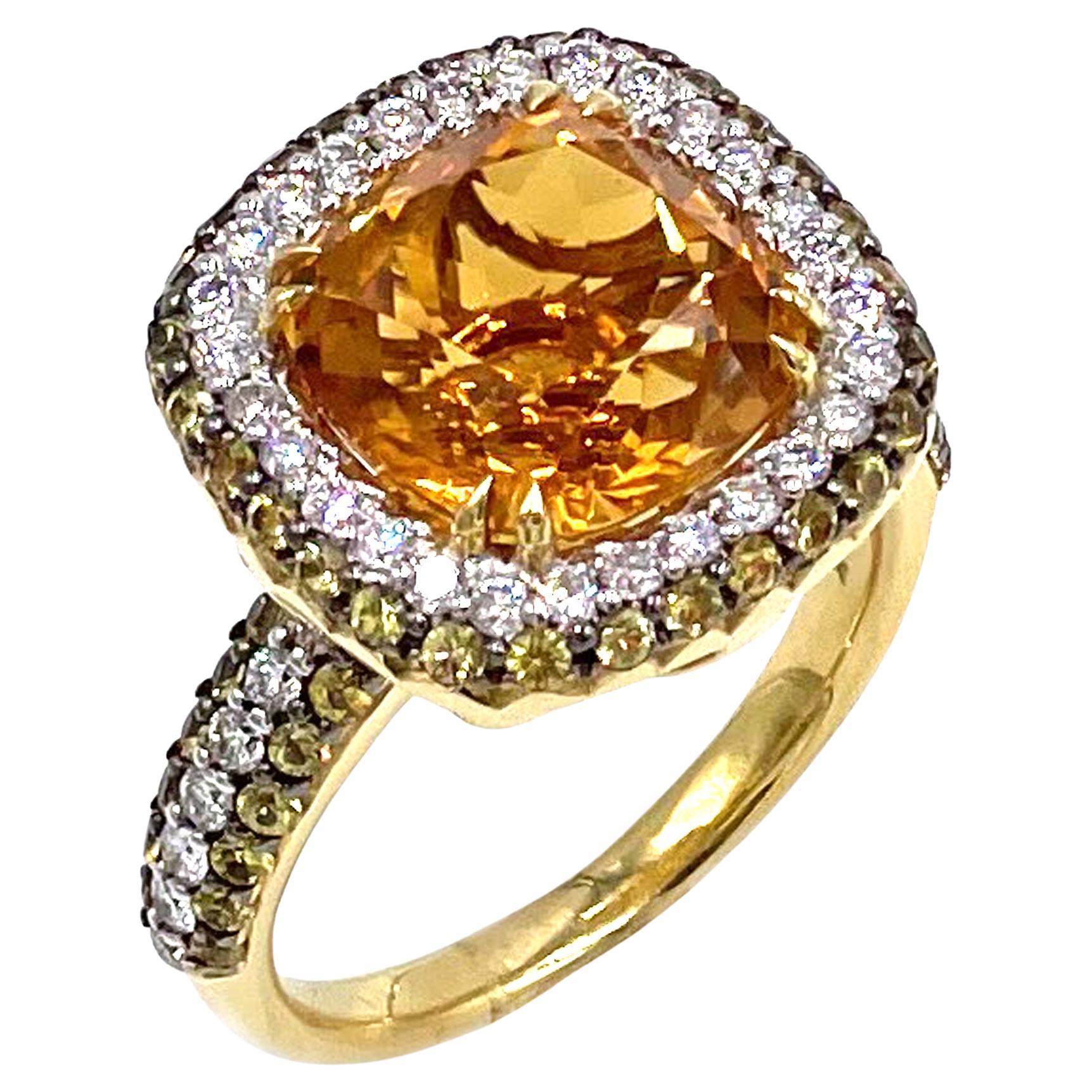 Anello aureola Vanna K in oro bianco 18 carati con diamanti rotondi taglio brillante per un totale di 0,25 carati. Al centro, uno zaffiro ovale creato in laboratorio per un totale di...