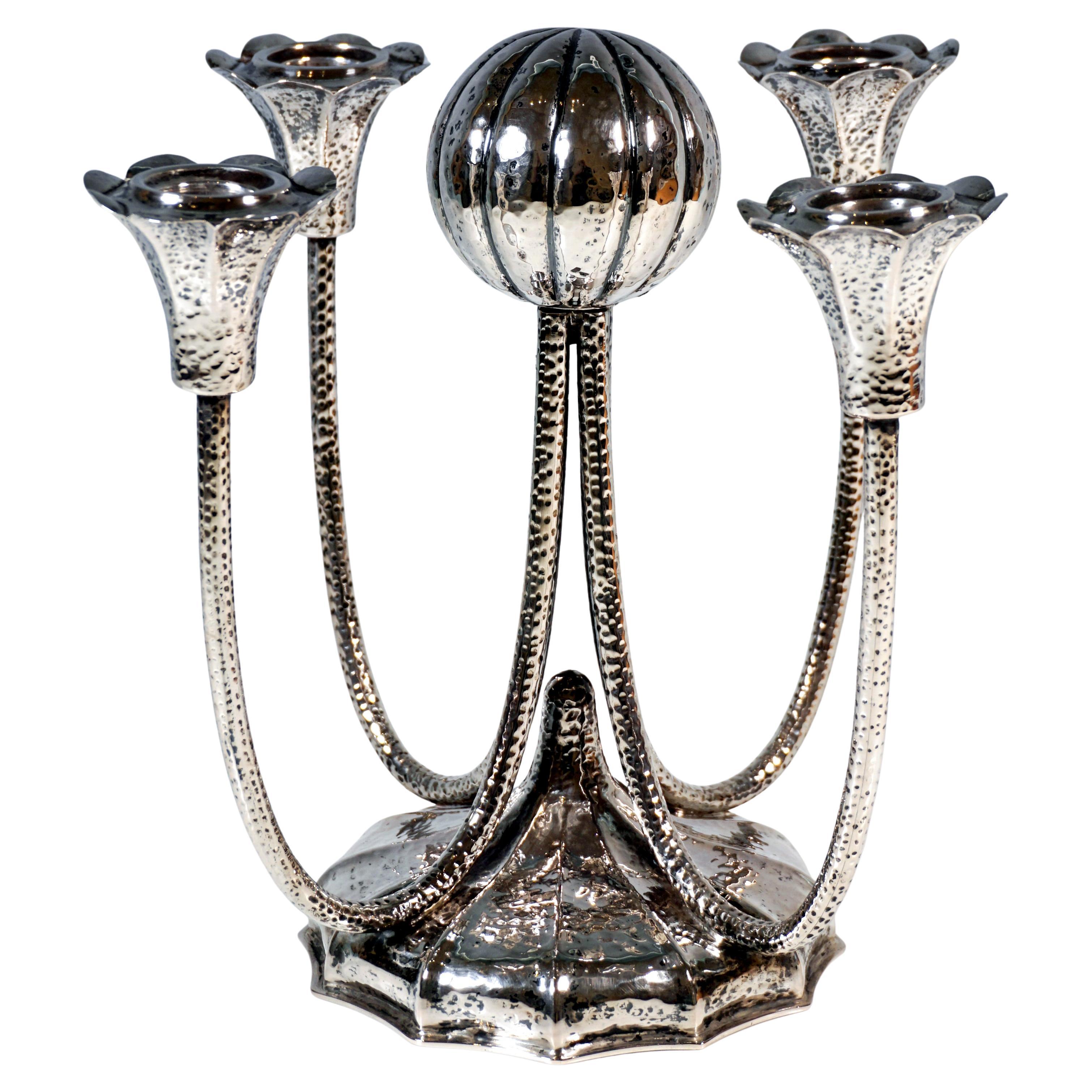 Candelabro a 5 luci in argento Art Nouveau viennese di Josef Kurzweil, circa 1900
