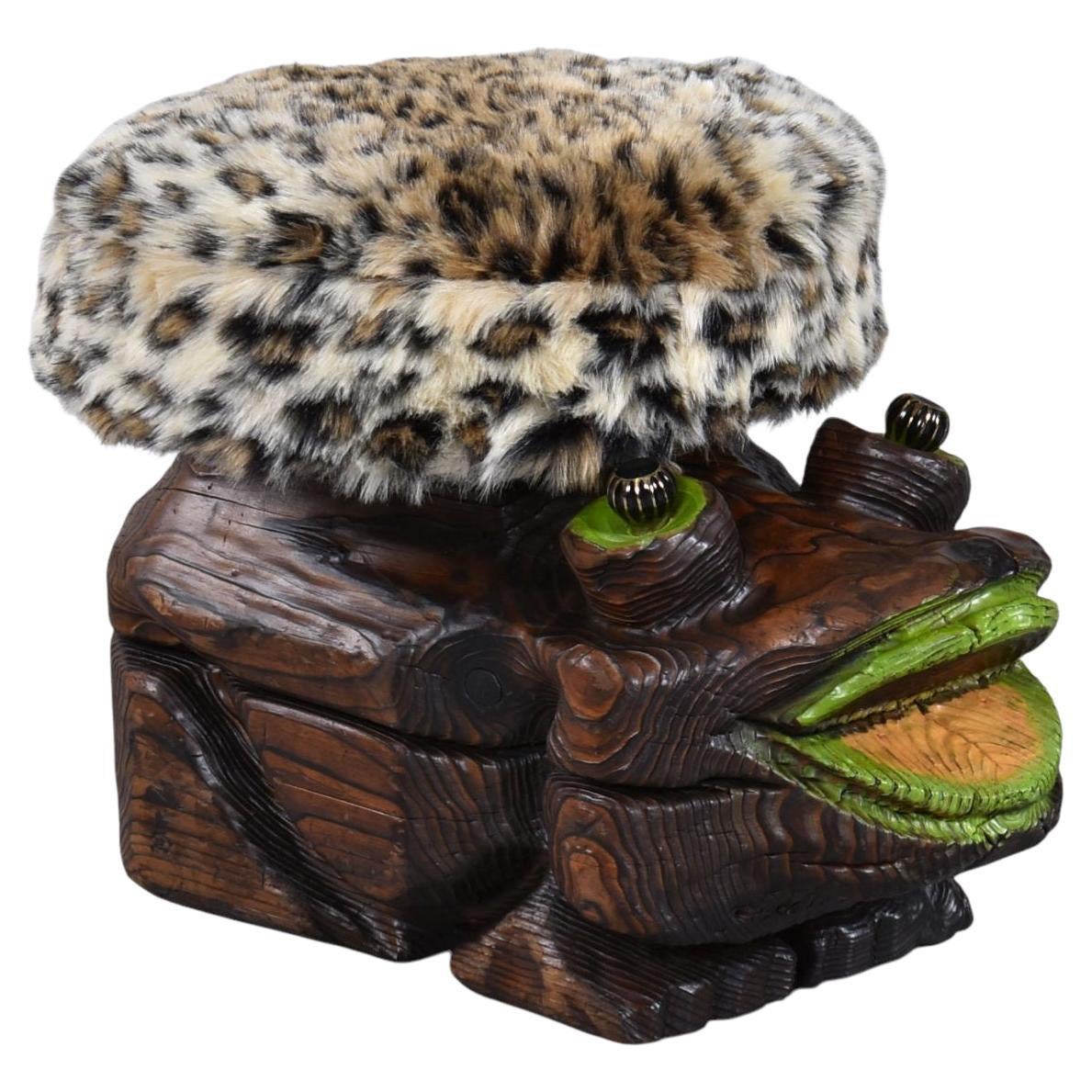 Sgabello restaurato Witco Tiki in legno intagliato con rana, ottomana e rospo