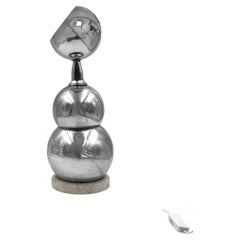 Chromed aluminum stacked spheres. Carrara marble base.