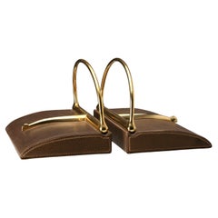 Gucci Reggilibri in Pelle e Ottone Italia Anni '70