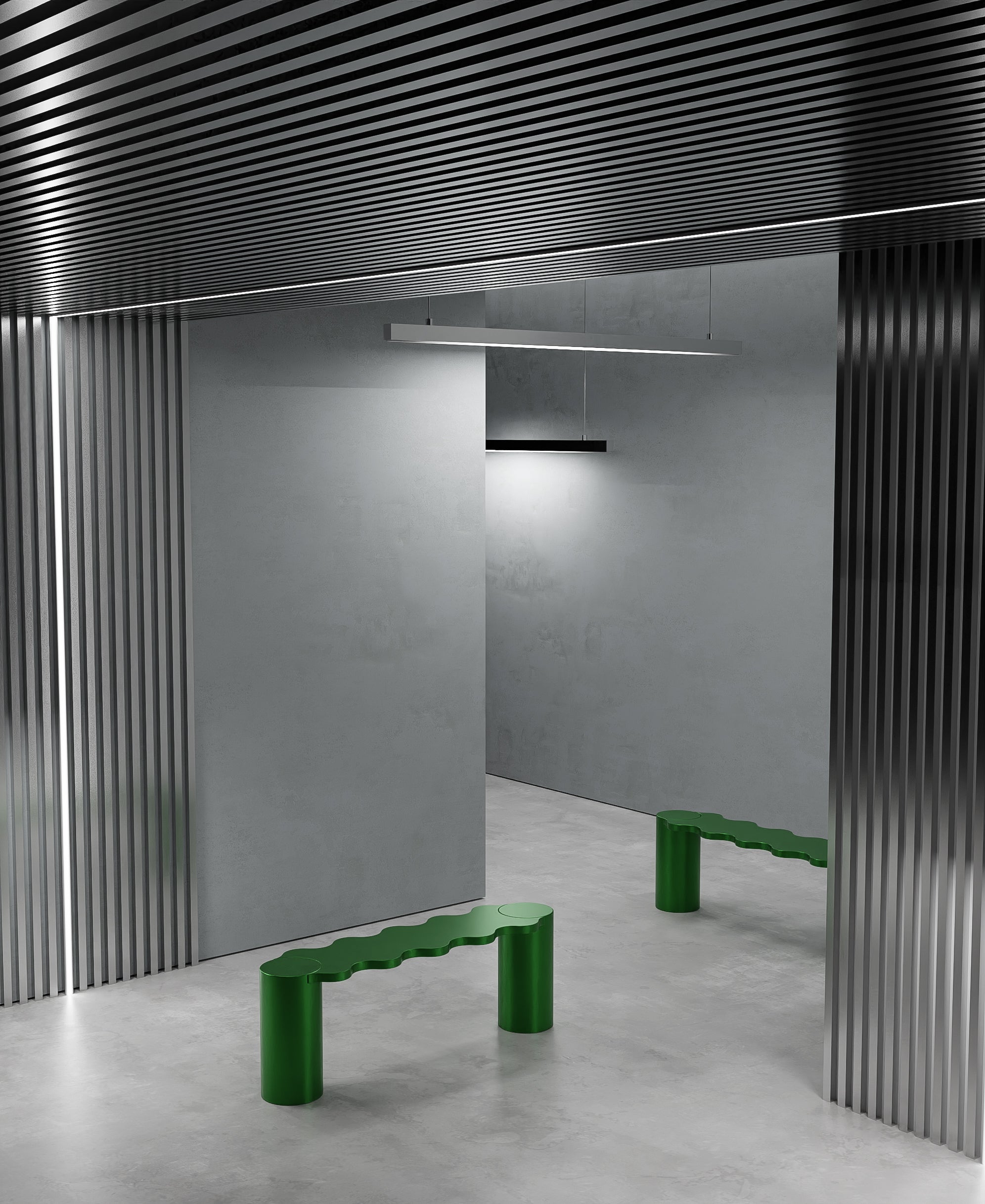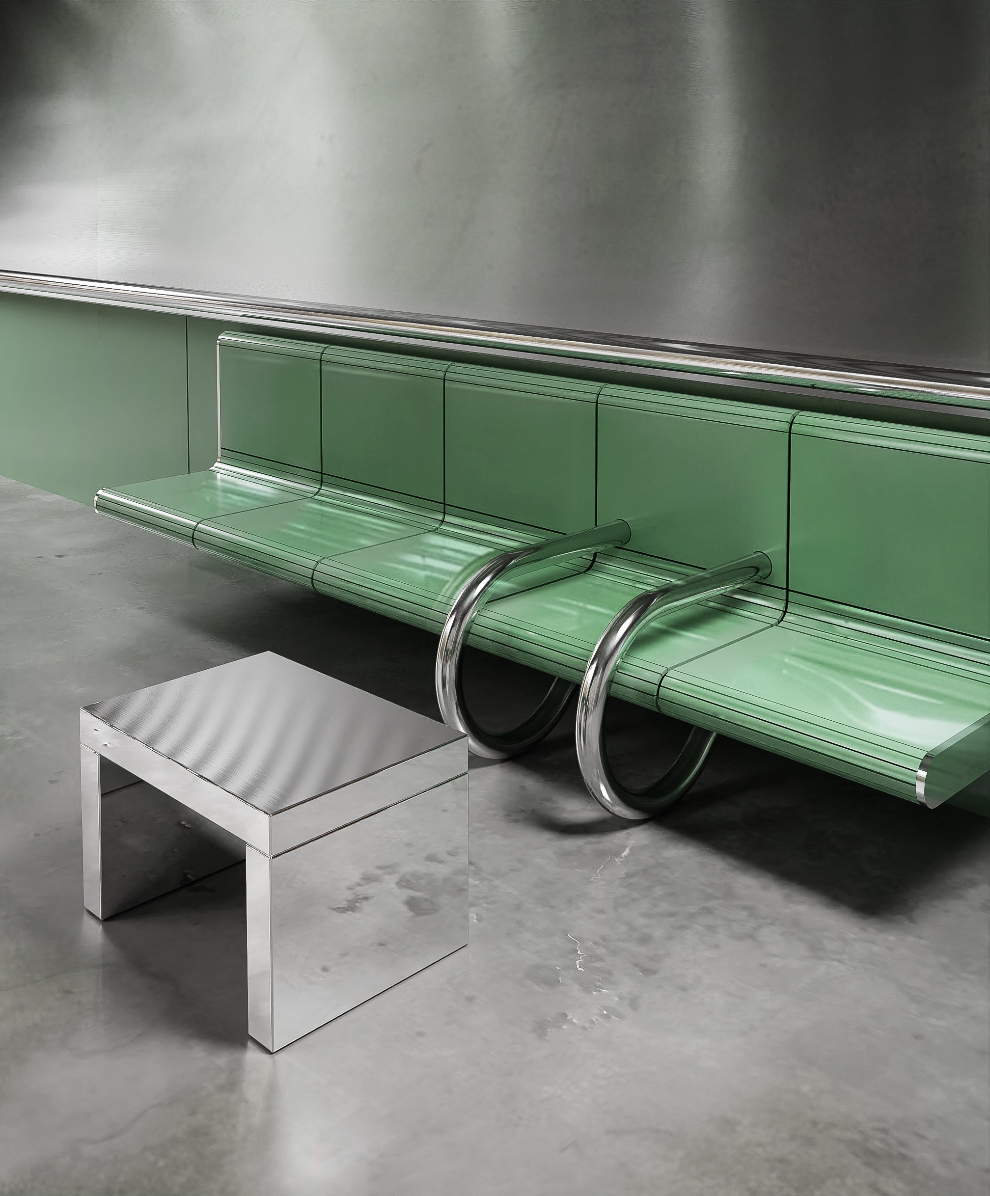 Hella Metallic is a bench characterised by its sculpture like curved shapes and deep metallic finish. The metal structure is formed by two cylindrical supports marked off with a wave...