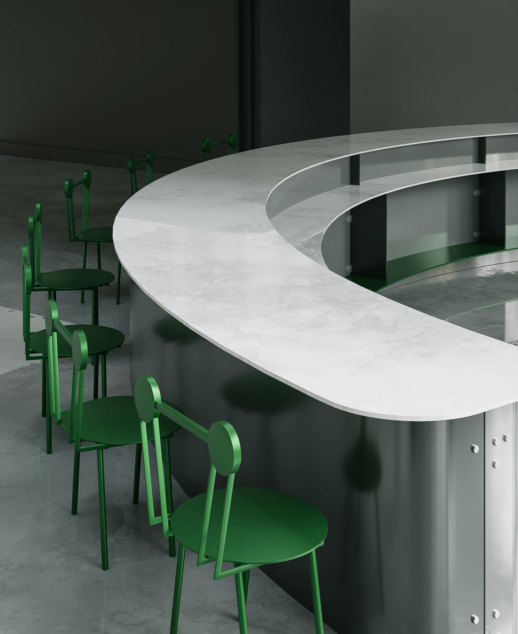 Haly is a contemporary metal seating. Its circular shapes and soft lines meet the strength of the metal creating a contrast inspired by sculpturing.