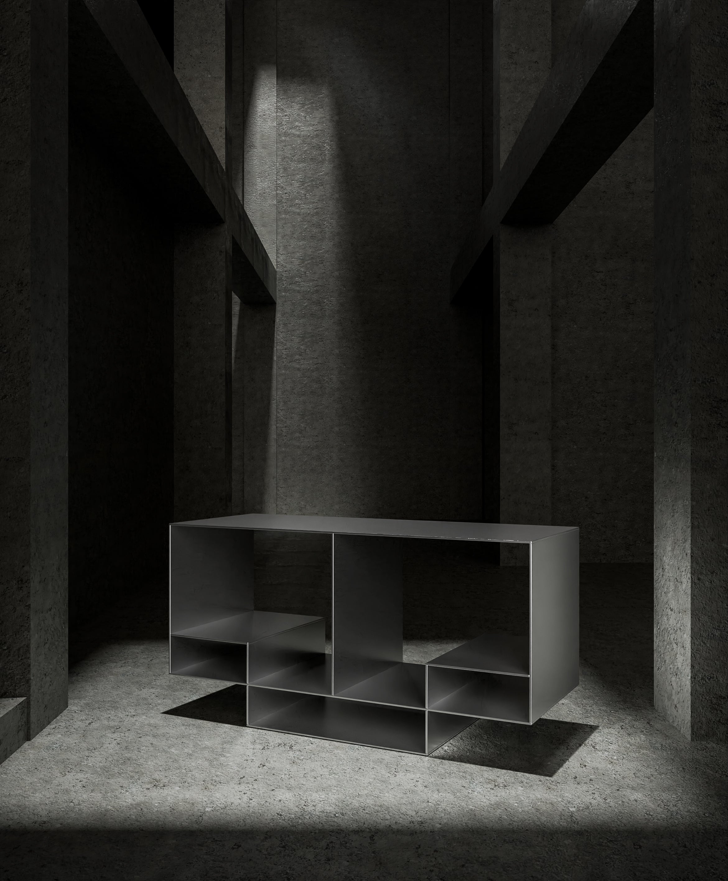 Cargo stool features a striking silhouette defined by sharp angles and clean planes. Its sculptural form explores the balance between negative space and solid geometry. A versatile ...