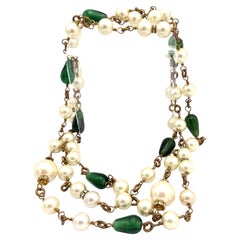 Chanel SAUTOIR, pate de verre verde di Greene & Greene Paris, perle finte, firmato 1983