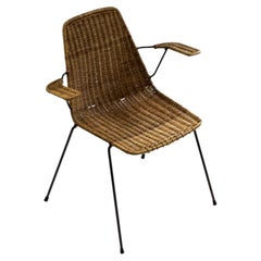 Sedia italiana di mid-century in vimini e ferro, attribuita a Gian Franco Legler, anni '50