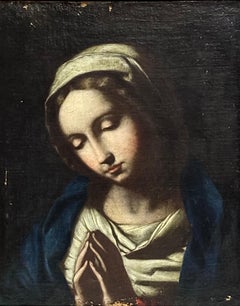 Antico olio su tela di soggetto religioso che ritrae la Vergine Maria in un momento di contemplazione di preghiera. La composizione si distingue per la serenità dell'espressione, i t...